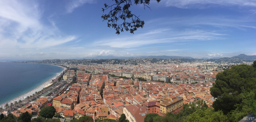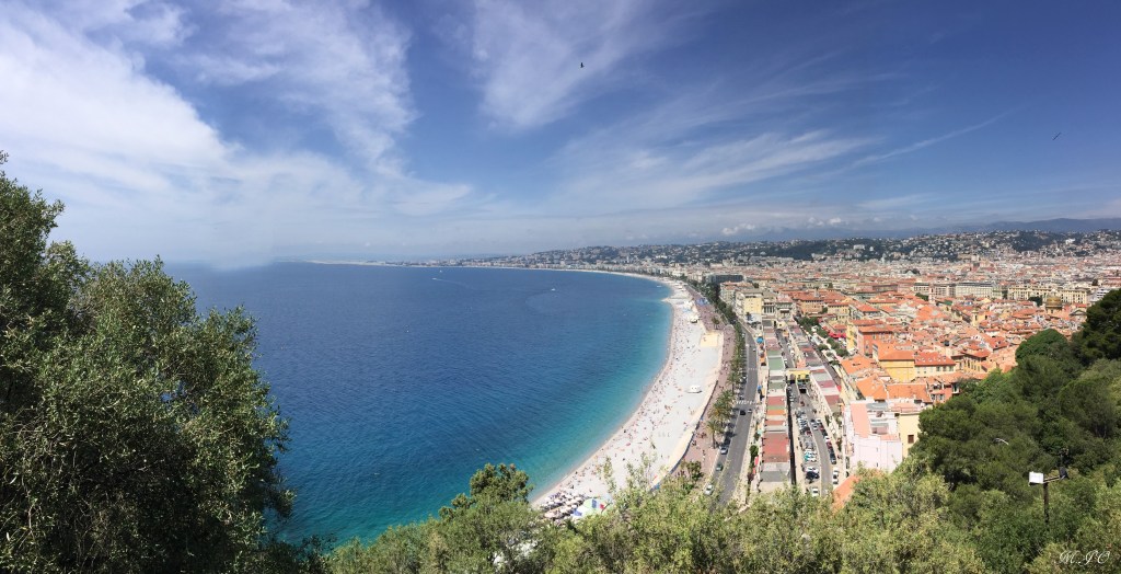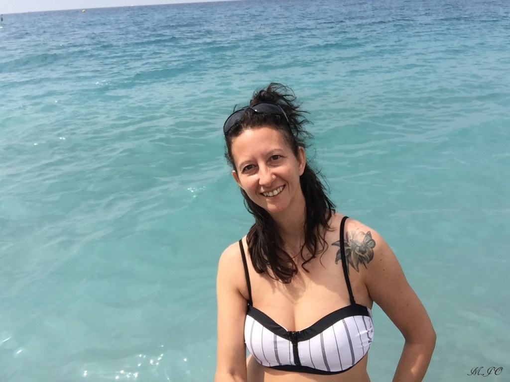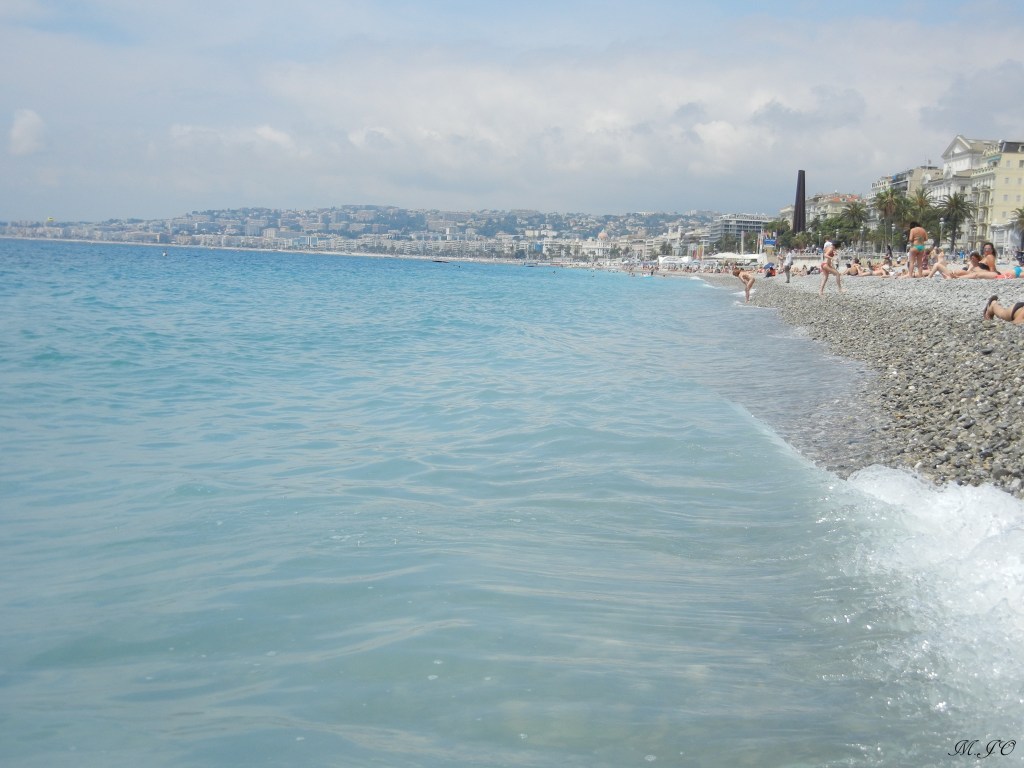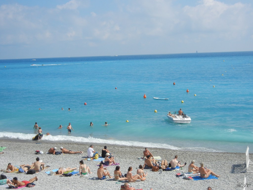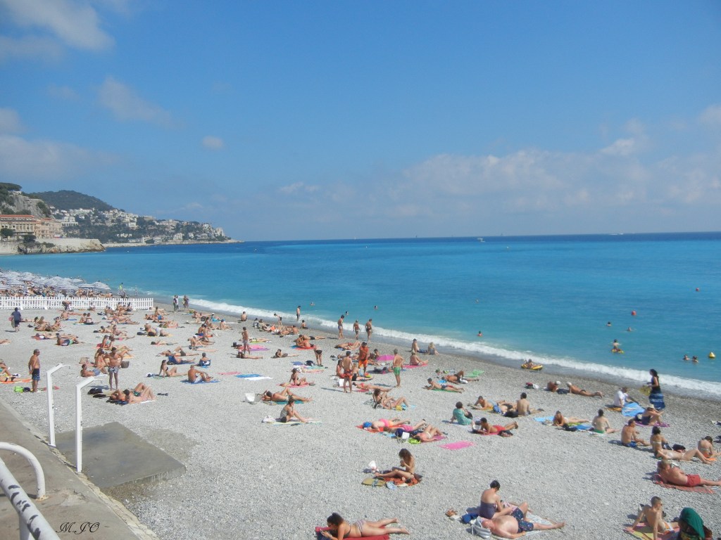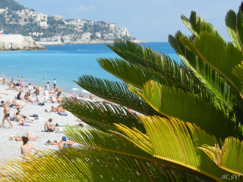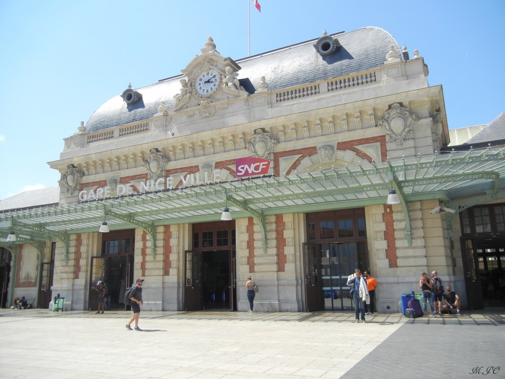 Lorsque, j’arrive à la Gare de Nice, il fait encore plus chaud qu’à Paris, un bon 28 degrés soleil tapant! Ouf, j’ai hâte de voir et de me baigner dans la mer!!