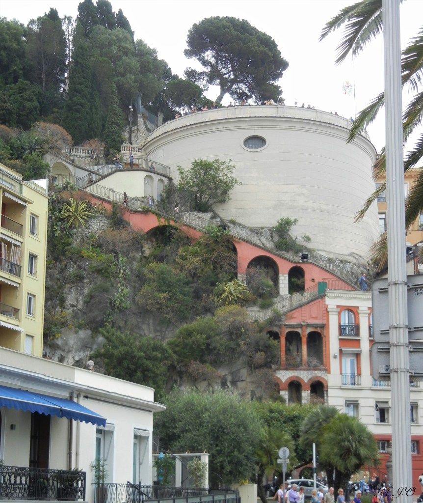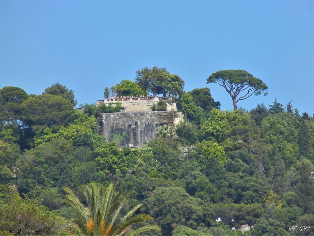 Le château de Nice était un bâtiment fortifié à vocation militaire, présent du XIᵉ au XVIIIᵉ siècle sur la colline rocheuse, surplombant la baie de Nice. Ils avaient une très bonne vision sur la baie s’ils étaient attaqués. Après avoir subi plusieurs sièges, notamment en 1543 et 1691, il fut pris en 1705 par les troupes françaises puis fut détruit en 1706 sur ordre de Louis XIV (oui oui, notre Louis de Versailles, partie 1). Au centre, la Tour Bellanda (l’édifice blanc sur la 2ième photo), construite au XIXème est à l’emplacement d’une tour de défense de l’ancienne forteresse (la Tour du Môle).