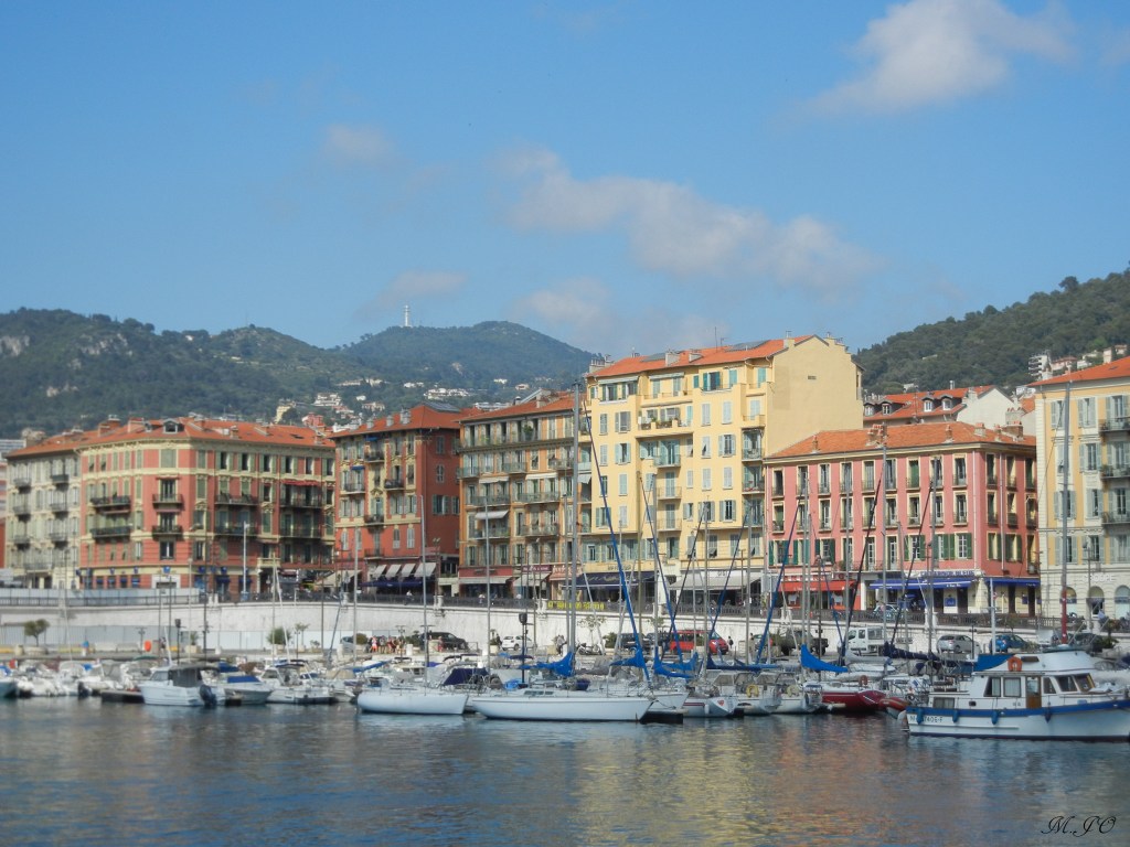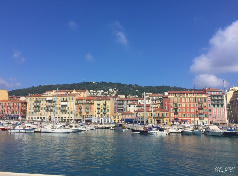 La vue du Port est très jolie, les maisons sont tellement colorées. Il y a de petites boutiques, restaurants, bars et cafés. On voit aussi en arrière-plan le Mont Boron. Il y a aussi un gros traversier jaune, c’est le traversier qui fait le trajet Nice-Corse (en 6-7 hrs).