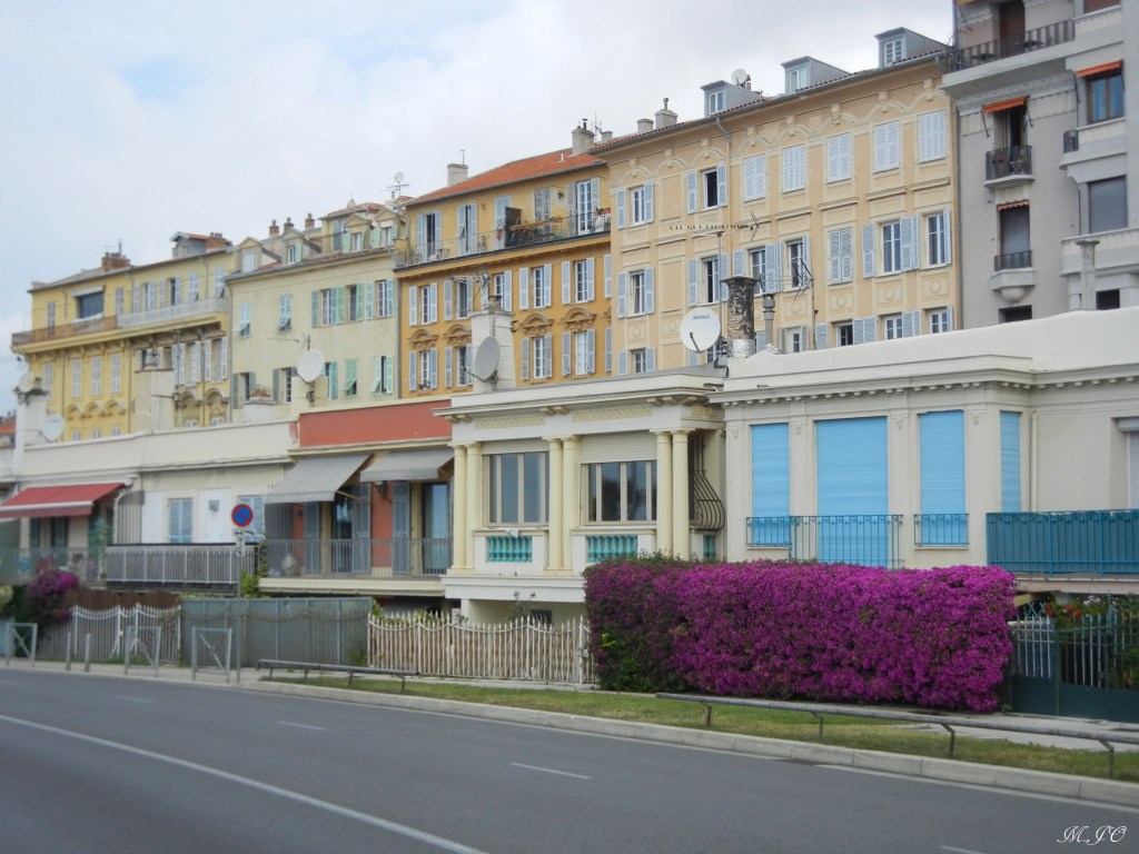 En fin de journée, je vais marcher sur la Place Masséna, c’est immense, l’architecture est super belle, les maisons qui ont de 3 à 4 étages sont rouge et jaune, d’autres sont rose avec des fenêtres avec des volets blancs, le sol est comme un damier gris et blanc. Il y a aussi plusieurs commerces. La Place tient lieu de rassemblements et de festivités.