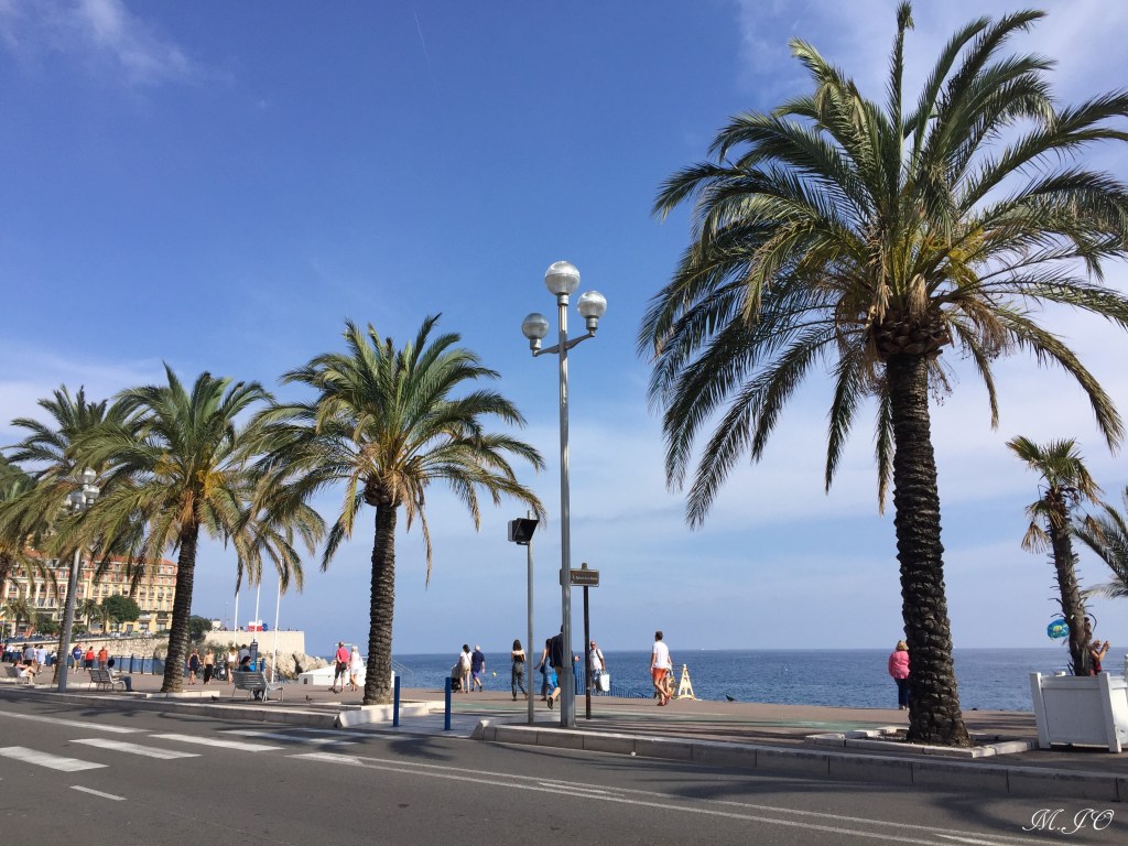 J’arrive quand même tôt à Nice, vers 15h, et je dois rejoindre mes hôtes vers 17h30. Ayant du temps devant moi, je décide donc de marcher, avec ma valise sur 4 roulettes (je dois dire que c’est un must à avoir quand l’on a beaucoup de déplacement à faire), et je longe l’avenue piétonnière de Jean Medecin (sur cette rue, on peut prendre aussi la tram, mais on ne peut pas y circuler en voiture). Sur la rue Jean Medecin, il y a beaucoup de boutiques et de restaurants. Il fait tellement chaud que j’arrête au coin d’une rue au Cesar Milato où ils servent des Gelatos vraiment super bons! Je descends ensuite jusqu’à la Promenade des Anglais, sur le bord de la mer avec plein de palmiers!!! Wow!!