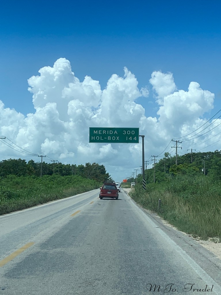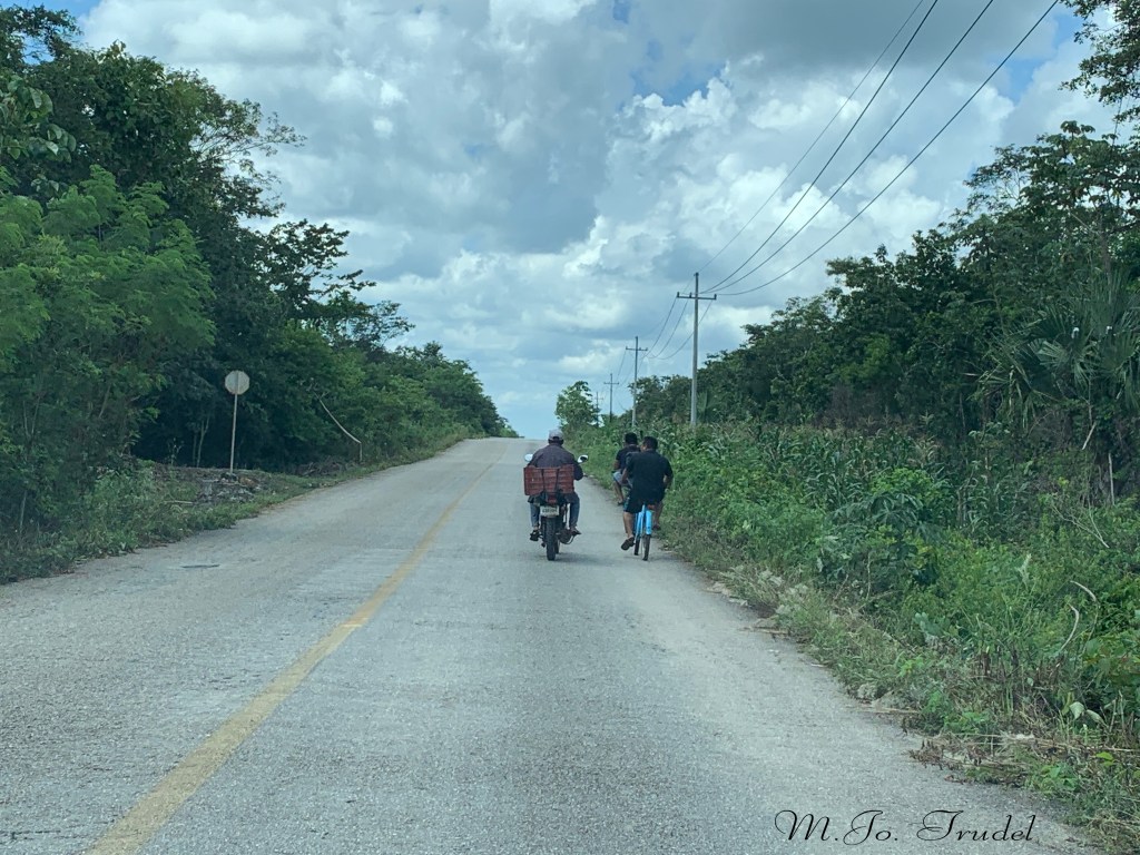 Pour aller à Holbox, nous devons prendre la route jusqu’à Chiquila, la route se fait quand même bien, apart quelques bouts de routes non asphaltées, donc en terre et en trou d’eau. Nous passons seulement une grande ville, Kantunilkin, et quelques mini-villages. Il faut donc prévoir un pleins d’essence et collations.