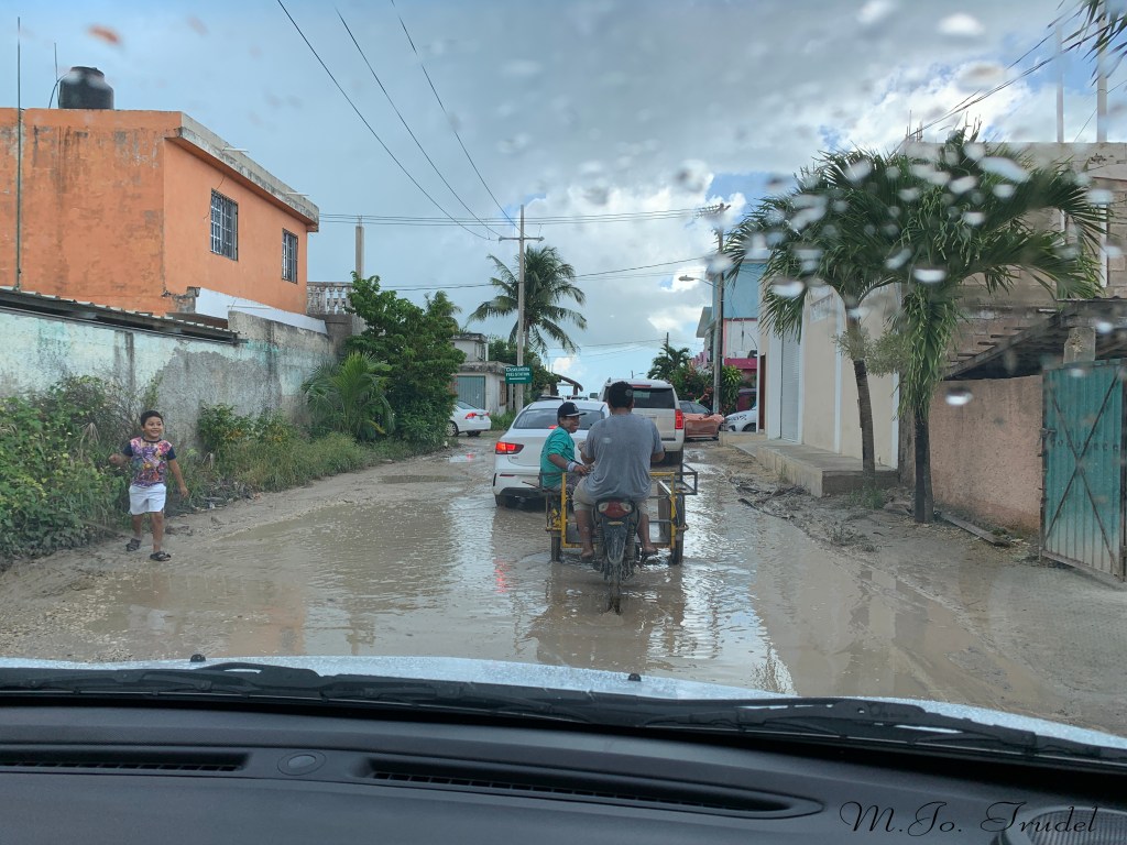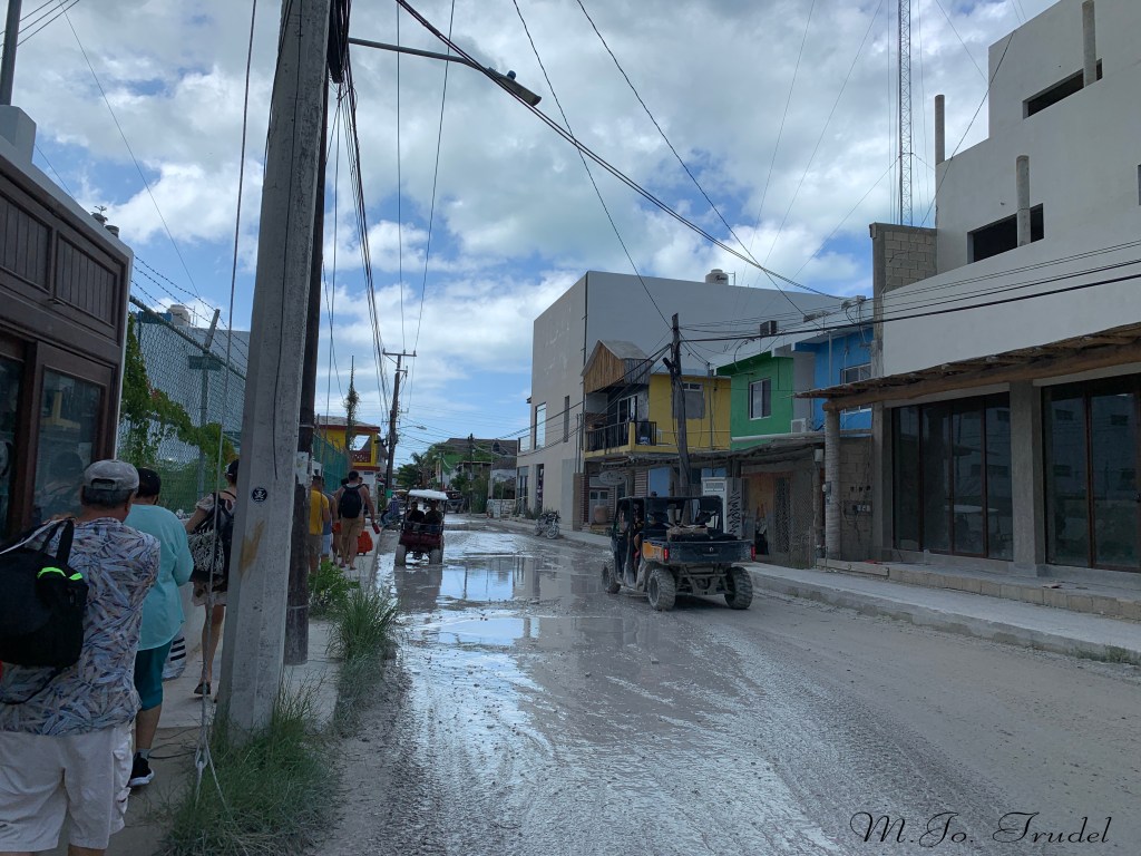 En arrivant sur l’ile, un autre bordel…Il n’y a pas de rue en asphalte et c’est inondé par endroit. Il n’y a pas de voiture qui roule sur l’ile, seulement des petits VTT ou des genre de voiturette de golf, alors soit que l’on marche, soit on prend le taxis VTT ou que nous pouvons louons un 4 roues. Mais l’ile n’est pas très grande , alors tout ce fait bien à pied. Vidéo: https://fb.watch/fQNkV59zv3/