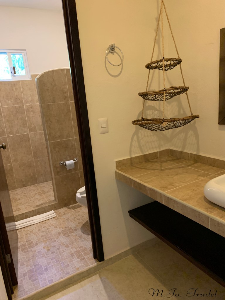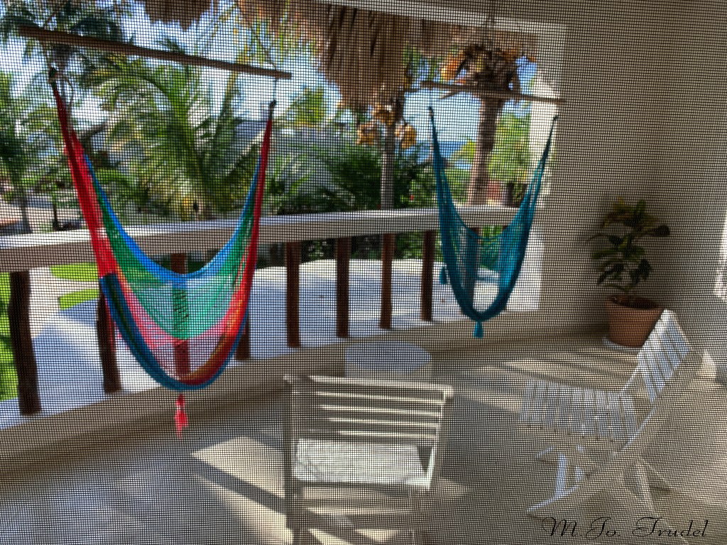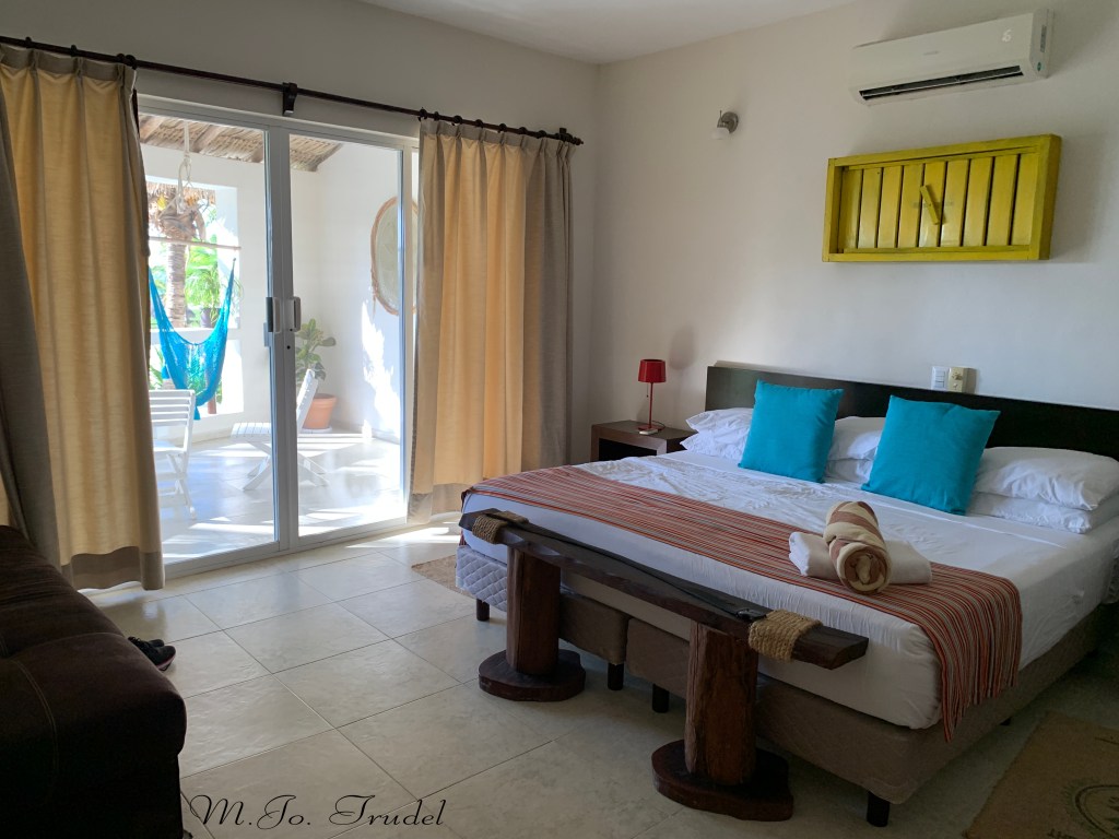 Notre hôtel le Puerto Holbox , bon un peu cher, mais avec la chaleur nous avions hâte de poser les sacs et d’aller nous baigner! Le Puerto Holbox est un petit resort au bord de la mer avec des petits bungalows de deux étages. Nous avons pris l’une des deux dernières chambres de disponible. La chambre est spacieuse, avec une belle salle de bain avec douche parapluie et un grand balcon vue mer, nous avions aussi un déjeuner d’inclus. Il y a un restaurant/bar près de la mer, une petite piscine et plusieurs lits à baldaquin sur la plage.