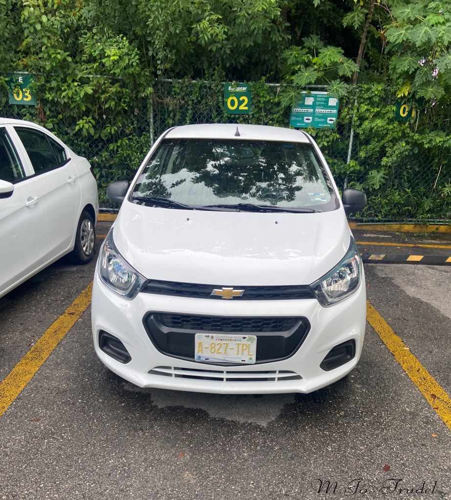 Pour ce voyage, je voulais explorer Cancun et les environs par moi-même, je décide donc de louer une voiture à partir de l’aéroport. L’expérience ce passe super bien, arrivée au comptoir d’Europcar, le gars nous guide à la navette pour se rendre au centre de location.