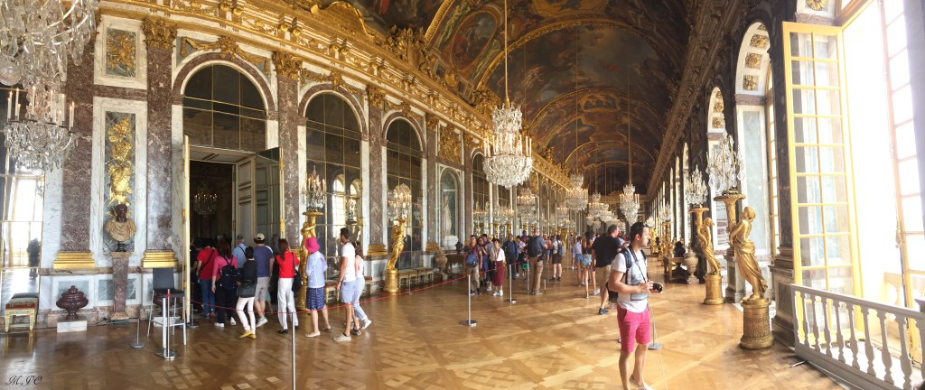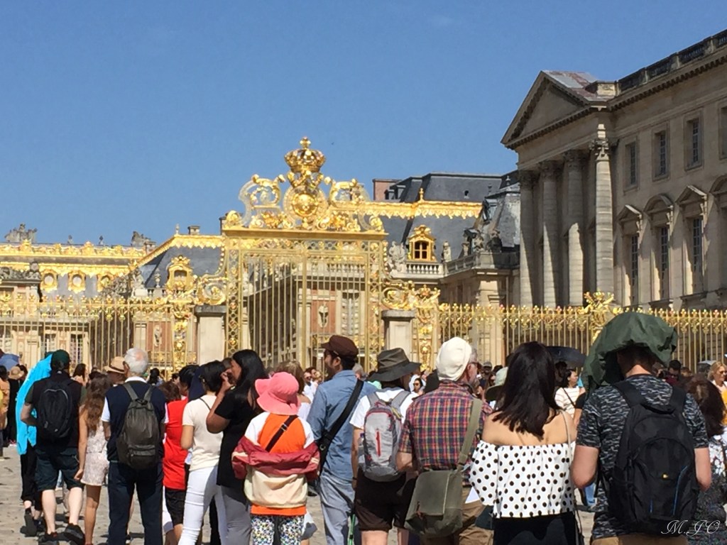 WOW, Versailles, c’est le Château que j’ai choisi de visiter, mais il y en a tant d’autres à voir! J’arrive assez tôt le matin, on peut acheter son billet en ligne et sur place aussi. Il y a beaucoup de monde et j’attends 2 heures pour entrer sur le site, c’est un attrait très touristique, en plus il fait un gros soleil et il fait très chaud un 30-32 degrés, ouf!!