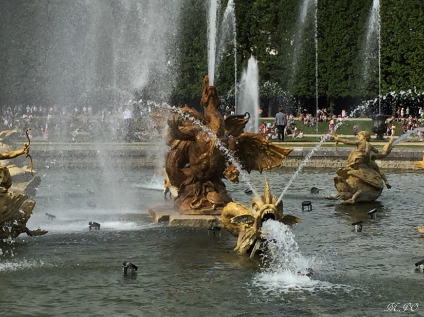 Je suis chanceuse, car aujourd’hui, il y a le spectacle des Grandes Eaux Musicaux. Et je dois dire que c’est à voir absolument, car à toutes les 2 heures, toutes les fontaines du jardins fonctionnent et il y a une musique classique qui joue, il ne me manque qu’une belle grande robe d’époque….On se sent réellement au 17ième siècle. Il ne faut surtout pas manquer le bassin de Neptune à fin de la journée car c’est grandiose!
