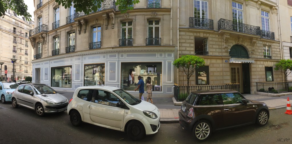 Aujourd’hui je sors à la station Franklin D. Roosevelt qui est situé en plein dans le rond point des Champs- Élysées et l’Avenue de Montaigne. Je vais faire du lèche vitrine. Ayant fait un DEC en dessin de mode, étudié l’histoire de la mode et ses grands couturiers, je trippe à aller voir les maisons de haute-coutures. Du Chanel, Yves-St-Laurent, Dior qui prend à lui seul 2 coins de rue avec ses sections hommes, femmes, enfants, parfums, bijoux. Du Balenciaga, de Versace, Gucchi, Givenchy, Dolce Gabana, Valentino, Giorgio Armanie. Ils sont tous là! Mais je n’ose pas entrer car il y a des gardes de sécurité partout et c’est très intimidant et c’est sur que j’ai 0 sous à dépenser là!!