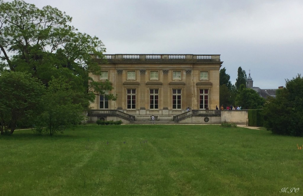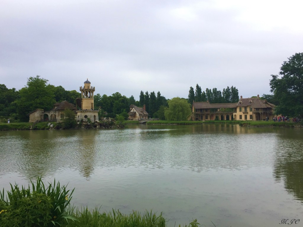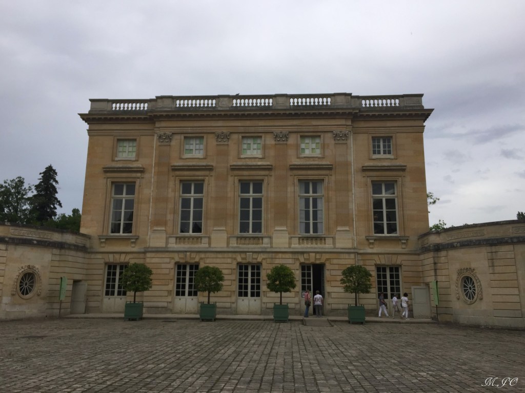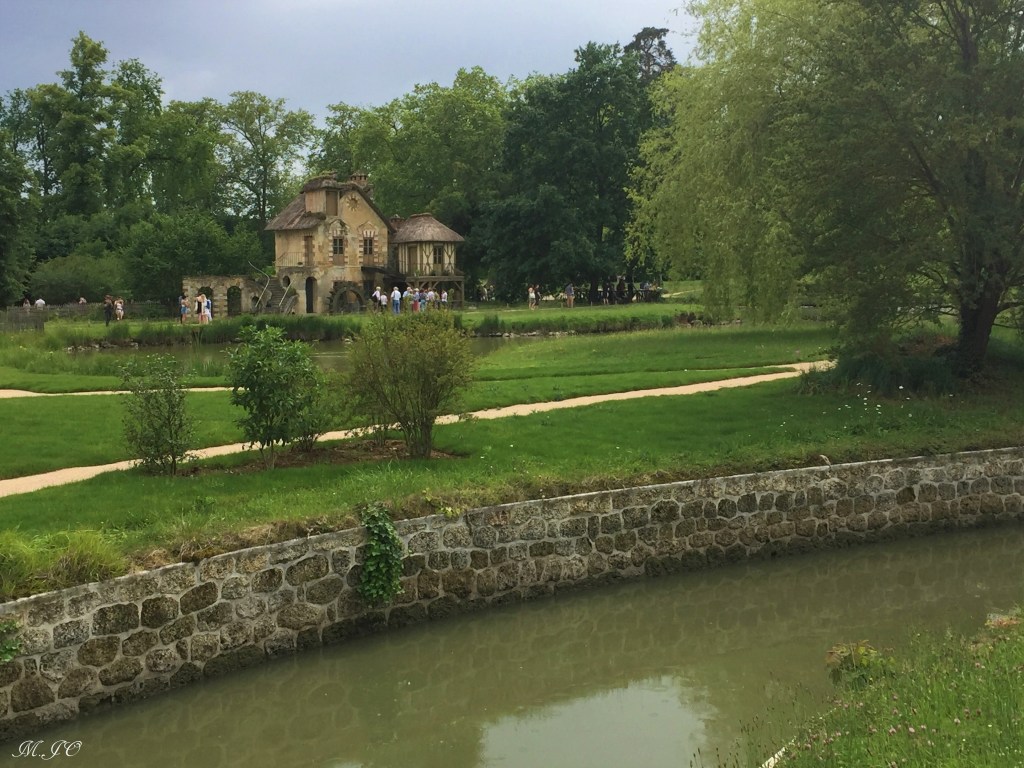 Un peu plus loin dans les jardins, il y a le Grand-Trianon, c’était une résidence d’été où le roi aimait venir pour se reposer et fuir la cours. A côté, il y a le Petit Trianon, qui fut construit en 1763 pour Madame de Pompadour, Maitresse en titre de Louis XV, mais qui devint quelques années plus tard, dans les années 1770, la résidence de la reine Marie-Antoinette épouse du roi Louis XVI, le petit-fils de Louis XIV. Marie-Antoinette épouse le roi à 14 ans et devient reine lors de son couronnement à l’âge de 18 ans. Elle s’installa au Petit Trianon presque en permanence, car elle n’aimait pas les contraintes de la cours. Elle y aménagea des jardins de style anglais et y fit construire un village autour du lac avec plusieurs petite habitations avec une architecture plus rurale, qu’on appelle, le Hameau de la reine. C’est bien de le visiter, j’ai aimé le style très différent et épuré que du château.