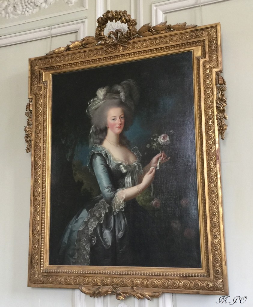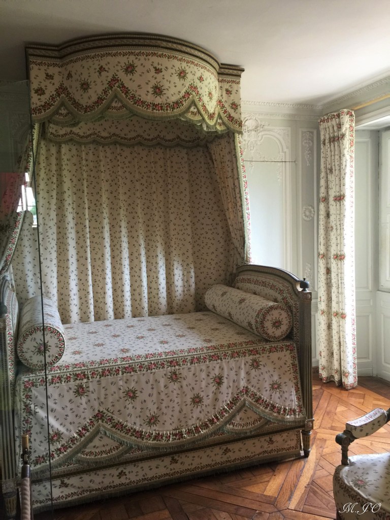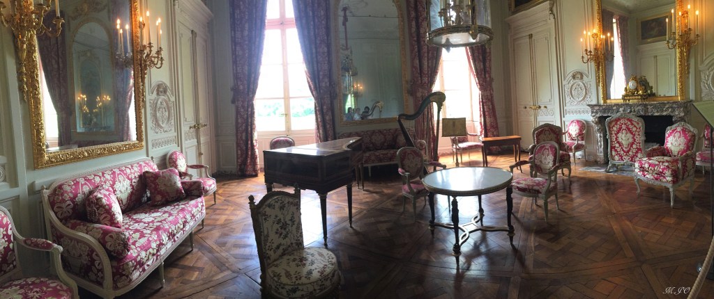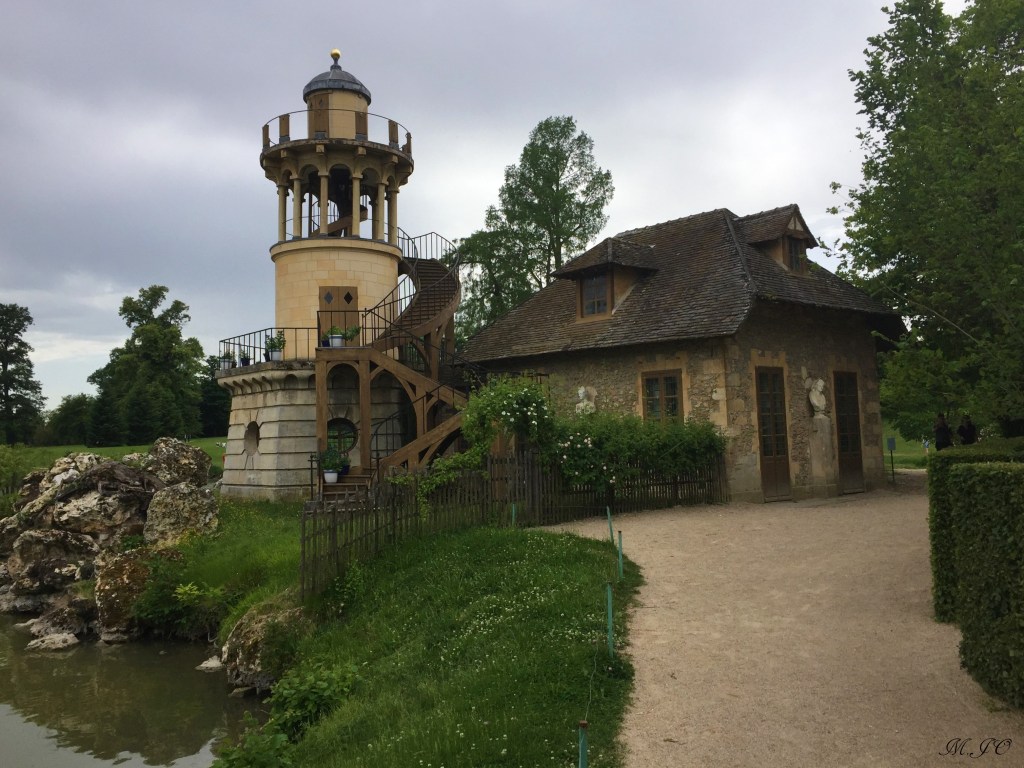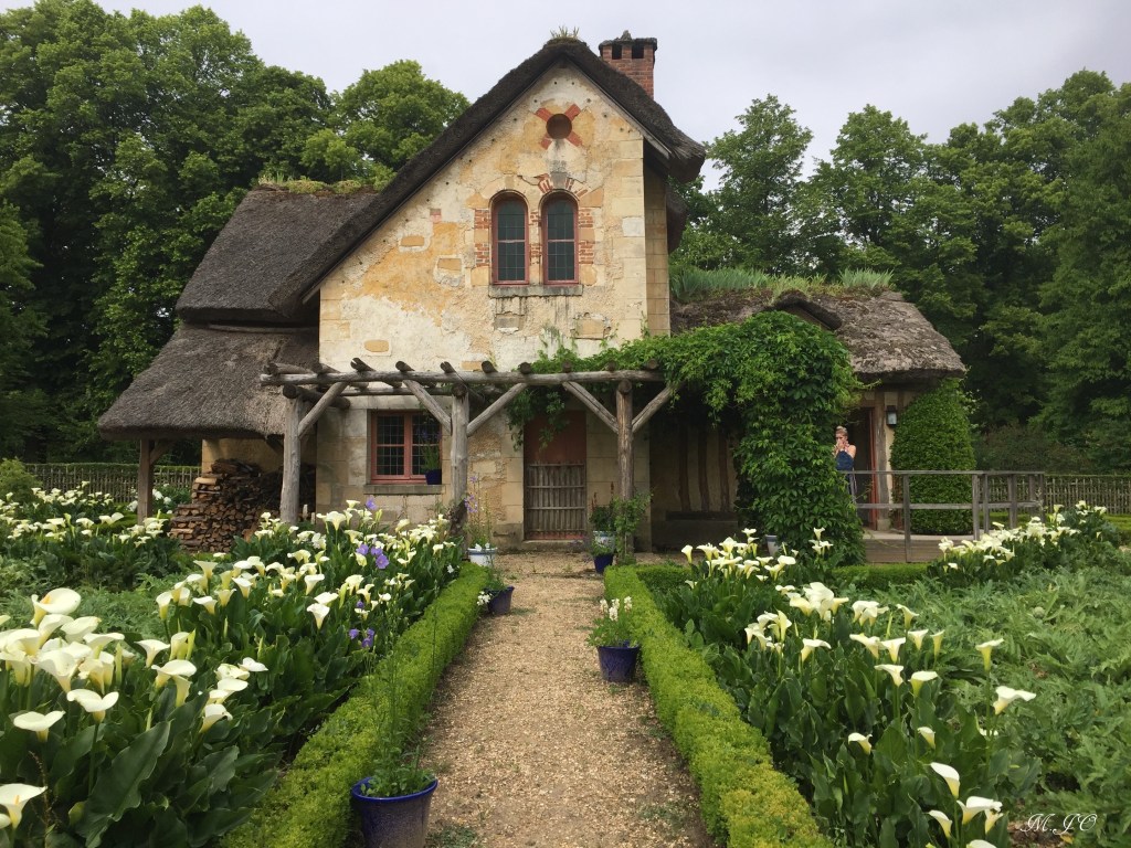 Un peu plus loin dans les jardins, il y a le Grand-Trianon, c’était une résidence d’été où le roi aimait venir pour se reposer et fuir la cours. A côté, il y a le Petit Trianon, qui fut construit en 1763 pour Madame de Pompadour, Maitresse en titre de Louis XV, mais qui devint quelques années plus tard, dans les années 1770, la résidence de la reine Marie-Antoinette épouse du roi Louis XVI, le petit-fils de Louis XIV. Marie-Antoinette épouse le roi à 14 ans et devient reine lors de son couronnement à l’âge de 18 ans. Elle s’installa au Petit Trianon presque en permanence, car elle n’aimait pas les contraintes de la cours. Elle y aménagea des jardins de style anglais et y fit construire un village autour du lac avec plusieurs petite habitations avec une architecture plus rurale, qu’on appelle, le Hameau de la reine. C’est bien de le visiter, j’ai aimé le style très différent et épuré que du château.