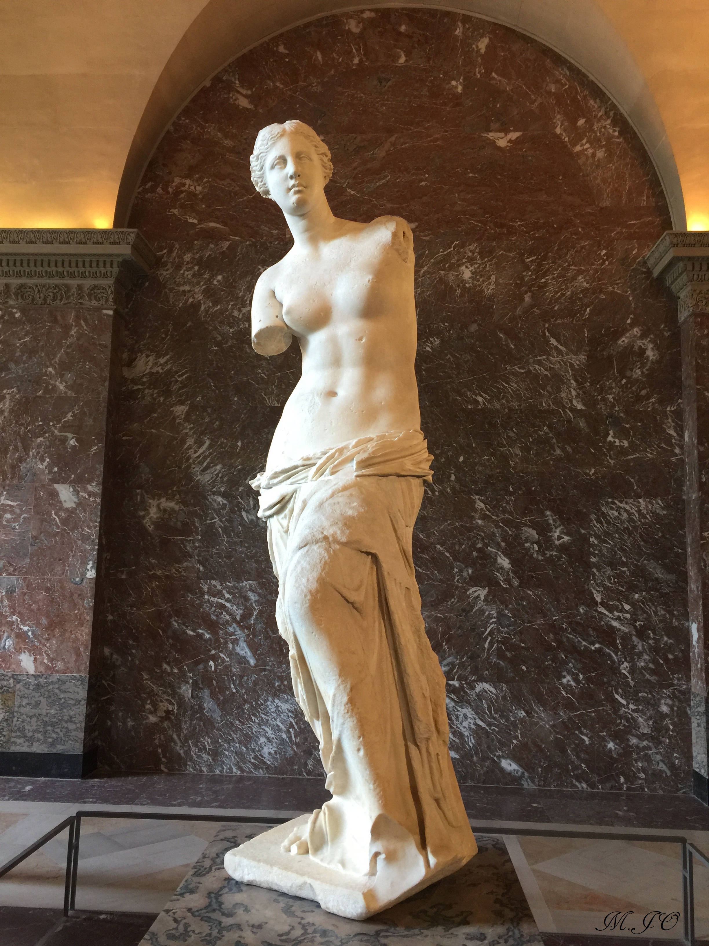 Une autre superbe journée!! 6 heures de culture artistique au Louvre! Voir des chef-d ’œuvres autant connus que la vrai Mona Lisa, c’est super génial!! Juste quand on arrive devant le Louvre, c’est tellement grandiose que l’on est déjà très impressionné. Le Louvre est en fait un ancien Palais Royal bâtie à partir d’un château fort médiéval construit il y a plus de 800 ans. Au fil des siècles, plusieurs rois y vécurent et le palais fut agrandi a plusieurs reprises. À l’ère de Louis XVI, qui décida d’installer sa cours en retrait de la ville, soit à Versailles, le Palais commença a abriter plusieurs œuvres d’art que ce soit de peintres, de sculpteurs, de joailliers.