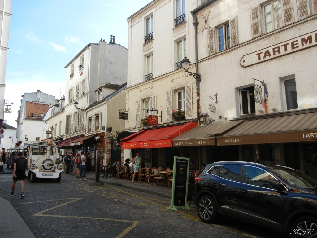 En sortant du Louvre, comme si je n’avais pas assez marché, je décide de reprendre le métro pour aller dans le Quartier de MontMartre (que m’avait suggéré Cathy). Le quartier est superbe, c’est le quartier des artistes, plus bohème, de style champêtre avec ses resto-terrasses, librairies, boutiques d’artisanat, ateliers de peintres.