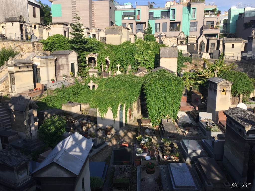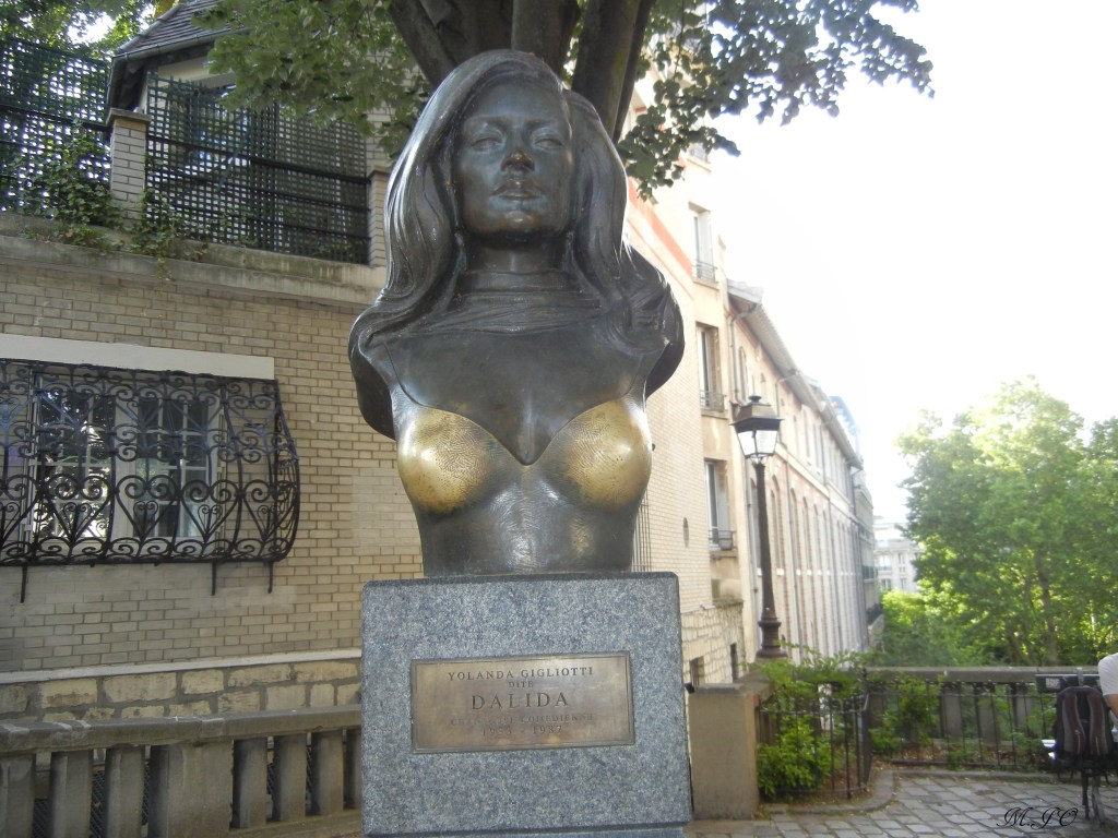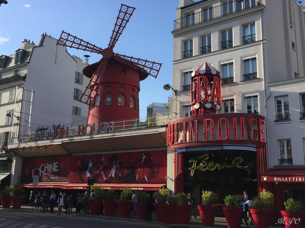 Sur le chemin du retour, je croise un vieux cimetière sous un pont, ou plutôt ils ont construit un pont par dessus le cimetière. Lorsque l’on dit, repose en paix, hahaha, C’est pas ce que j’appelle un endroit vraiment tranquille! C’est le Cimetière de Montmartre, là que repose entre autre Michel Berger, Fred Chichin des Rita Mitsouko (un groupe connue des années 80), Edgar Degas l’artiste peintre et Dalida, la chanteuse, qui a l’une des plus belle sépulture de l’endroit avec sa statue grandeur nature blanc-crème sur un fond de marbre gris avec des rayons de soleil en or, il y a aussi plusieurs arbustes et de fleurs. Elle était très aimé et admiré par les Français. J’ai aussi croiser son buste sur l’une des rues. Je croise aussi le Moulin Rouge, le célèbre cabaret du XIXe siècle avec ses souper-spectacles extravagants inspirés du cirque, ses soirées burlesques, de carnaval, de french cancan et musicales. Voir mon Vidéo FB: https://fb.watch/iFnAjFA1NY/