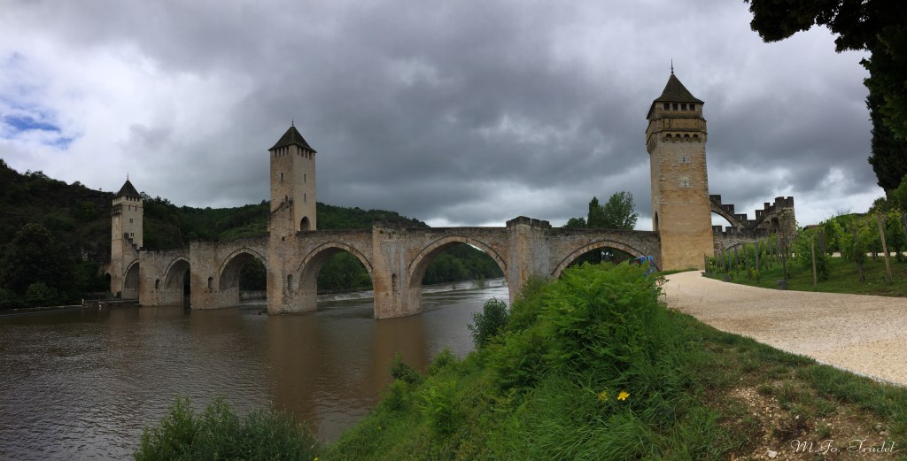 Le pont Valentré est un pont fortifié datant du 14ième siècle, il traverse le Fleuve Le Lot à l’ouest de Cahors. Il représente, avec ses trois tours fortifiées et ses six arches précédées de becs aigus, un exemple de l’architecture de défense du Moyen Âge. Il est vraiment magnifique!!