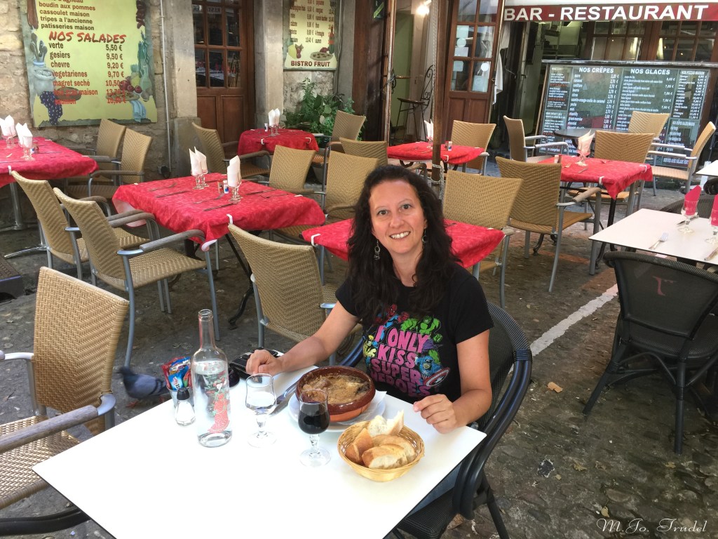 Quand le soleil se couche, les lumières illuminent toute la cité et c’est vraiment beau. Je me trouve un joli petit resto pour manger, bien sur un Cassoulet ( Plat typique de la région avec des haricots blancs, cuisse de canard, saucisses, lard, jarret de porc dans une sauce brune) avec un verre de vin rouge et c’est succulent. Je redescendant à mon hôtel au coucher du soleil. Parce que la vue depuis la cité à l’extérieur est aussi superbe!!