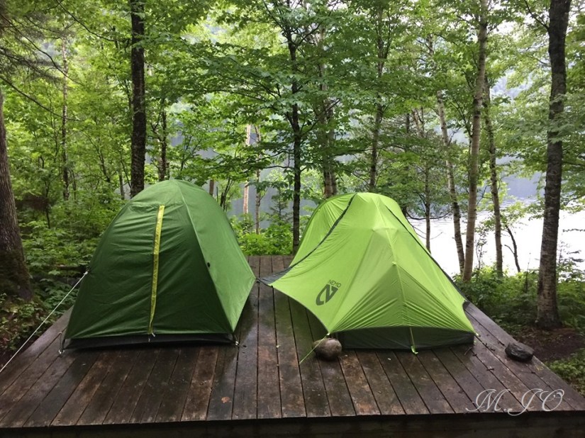 JOUR 2: Le matin au réveil le lac est tellement beau, calme et paisible, hooo hoooo 🙂 nous entendons le cri d’un huard qui se promène sur le lac, c’est magnifique et tellement tranquille!! Après une bonne nuit de sommeil, nous décampons, déjeunons et nous partons à l’autre refuge dans la montagne, nous aurons 6 km à faire avec un dénivelé de 500m, oufs avec mon sac de 30 livres sur le dos, grosse journée!! En plus, le soleil était de la partie pour une partie de la journée 🙂