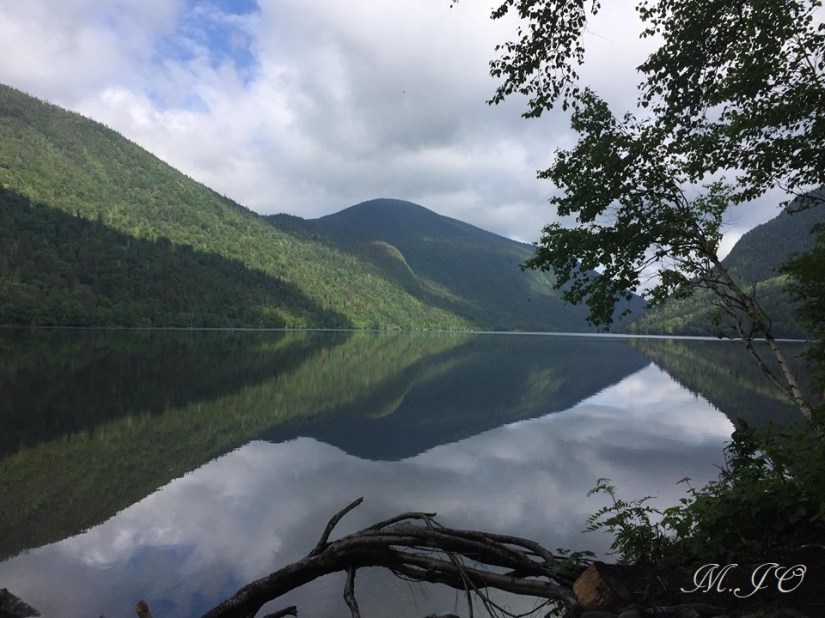 Ici une de mes plus belles photos, le lac Matane, le mont du Nid D’aigle à gauche complétement et le Mont Valcourt au centre, là où nous sommes allées la deuxième nuit!