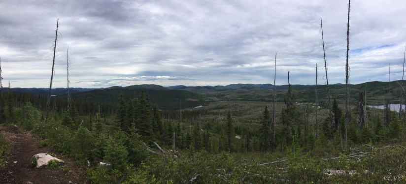 Notre Camping est au Centre de découverte et de service Arthabaska à environ 45 km du Centre de Service du Mont du Lac de Cygnes. Je peux dire que je n’ai pas regretté mon choix, car il est en montagne et en plein coeur du Parc des Grands Jardins. La route est très sinueuse et on monte, on monte! Lorsque l’on arrive en haut, on entre dans un tout autre univers. Le paysage est désertique, il y a des petits sapins, peu d’arbres et plusieurs sembles même morts. Il faut dire que dans les 20 dernières années, il y a eu plusieurs grands feux de forêt qui ont détruit plusieurs hectares du parc. Alors, c’est pour ça que le paysage semble encore désolant et sans vie! Mais, d’un autre côté, c’est réellement beau, nous sommes comme dans un autre monde. Il est aussi intéressant de voir la force de la nature et de la vie qui ont persisté malgré les incendies.
