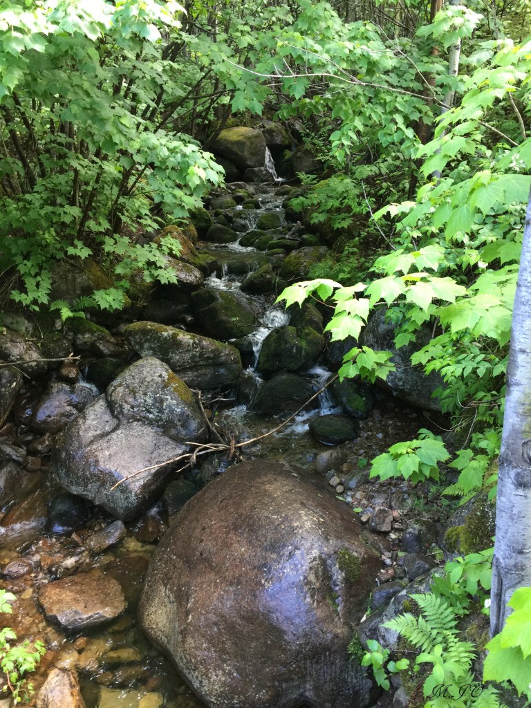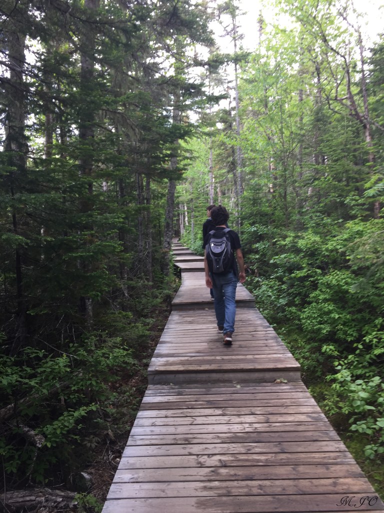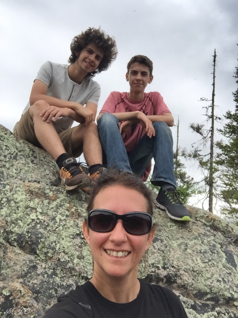 Nous n’avons rencontré personne, nous sommes donc les seuls dans le sentier. On ne sait toujours pas pour combien de temps on est parti, mais retourner sur nos pas est-ce mieux? Il me semble que ça fait longtemps que l’on marche, on doit finir la loupe sûrement bientôt! Alors, on continue armé de courage, on marche quand même vite et on décide de chanter pour faire du bruit, mes gars ne sont pas rassurés non plus. Nous avons passé tout le répertoire des Beatles, de Passe-Partout, de Disney avec la peur de rencontrer un groupe d’ours affamés à chaque tournant! Je regarde les arbres avec les poils d’ours et je capote!!