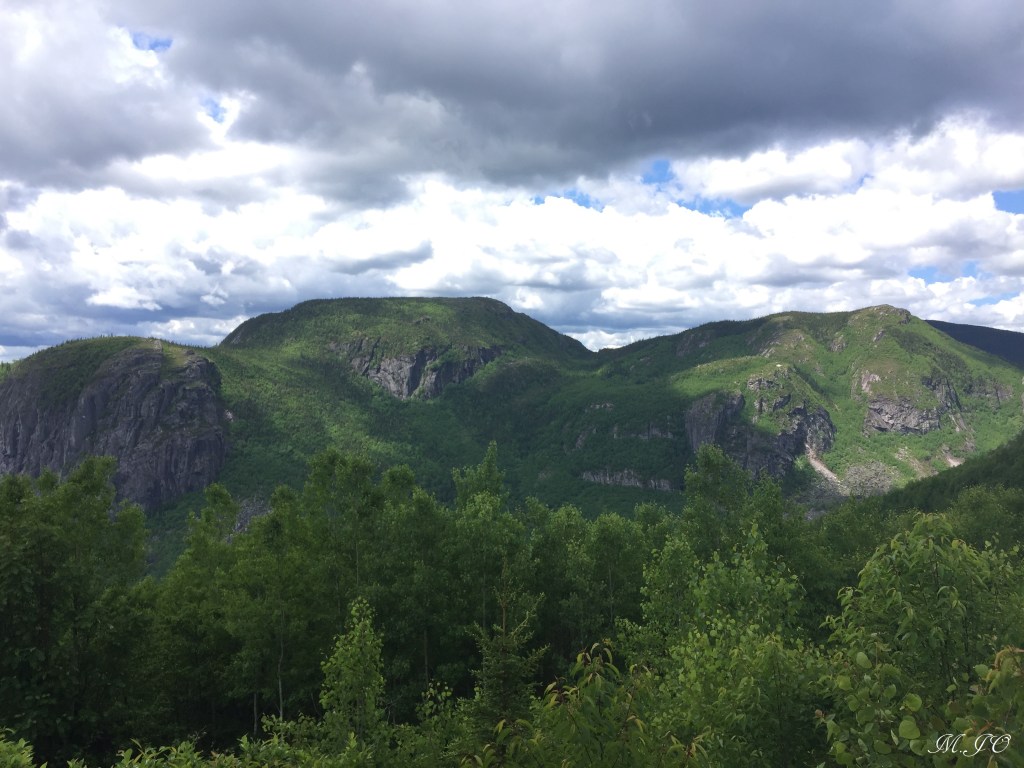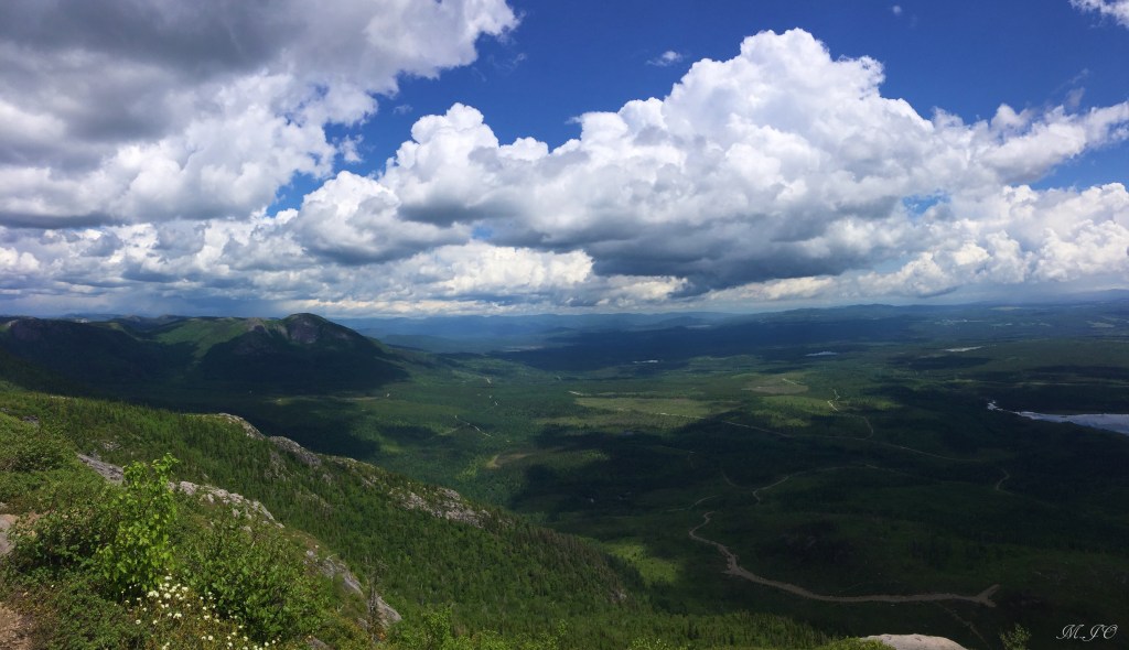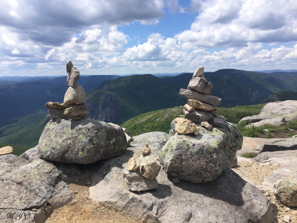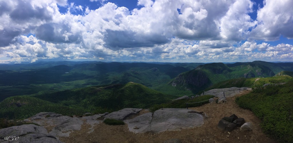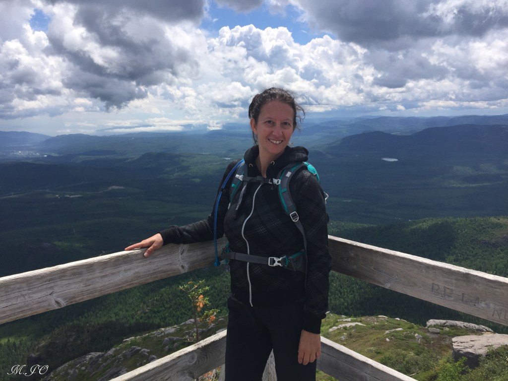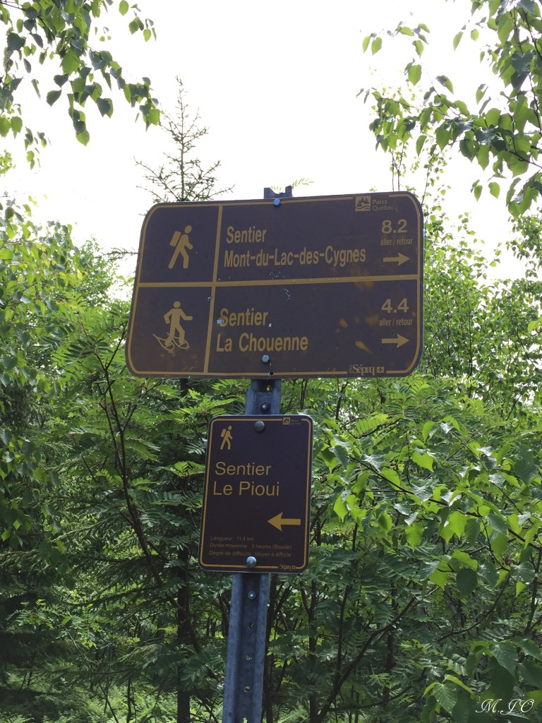 Le lendemain matin, il fait super beau au début de la journée et par la suite un peu nuageux. Nous allons faire Le sentier du Mont-du-Lac-des-Cygnes, c’est un sentier de 8.6 km aller-retour, intermédiaire, avec une altitude de 981m et un dénivelé de 480m qui nous a pris 4h30. Le sentier est superbe, bien aménagé, un bout quand même assez ardu qui monte plus raide. Mais la récompense de la vue du sommet, c’est wow!!! La vue époustouflante, disons qu’après l’Acropole, c’est le sommet le plus beau que j’ai fait au Québec!!