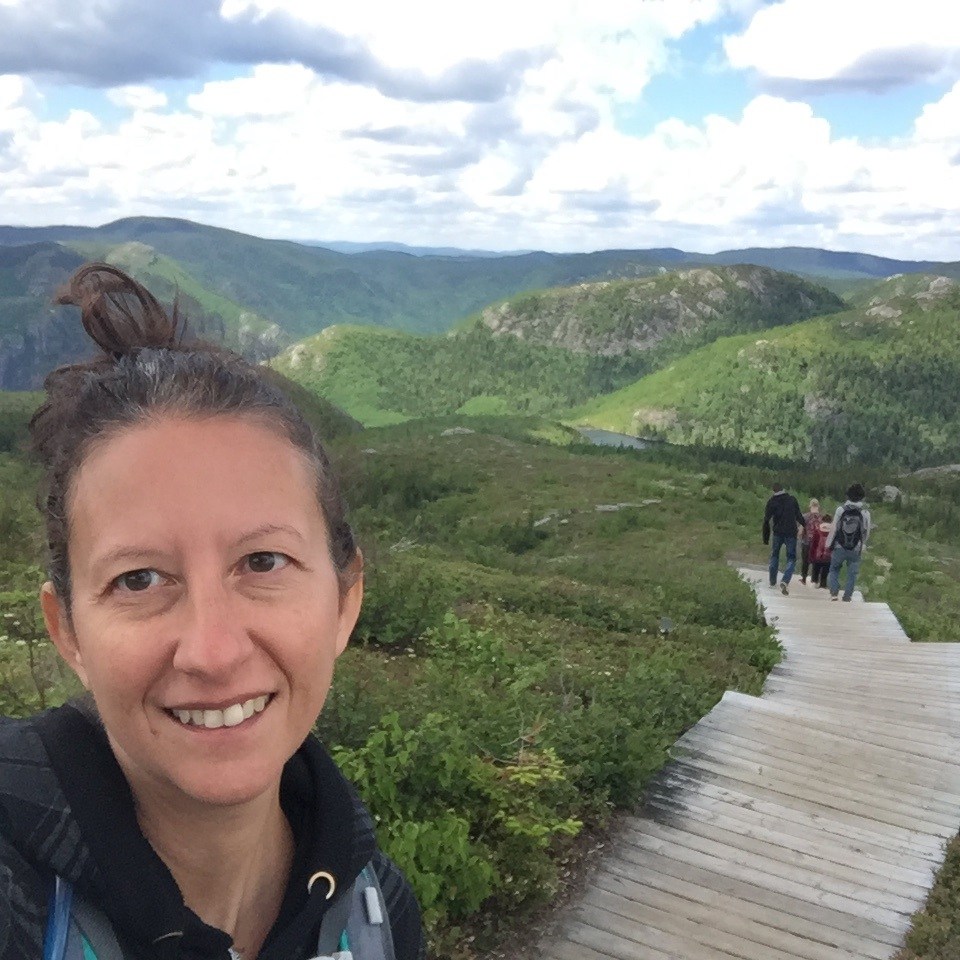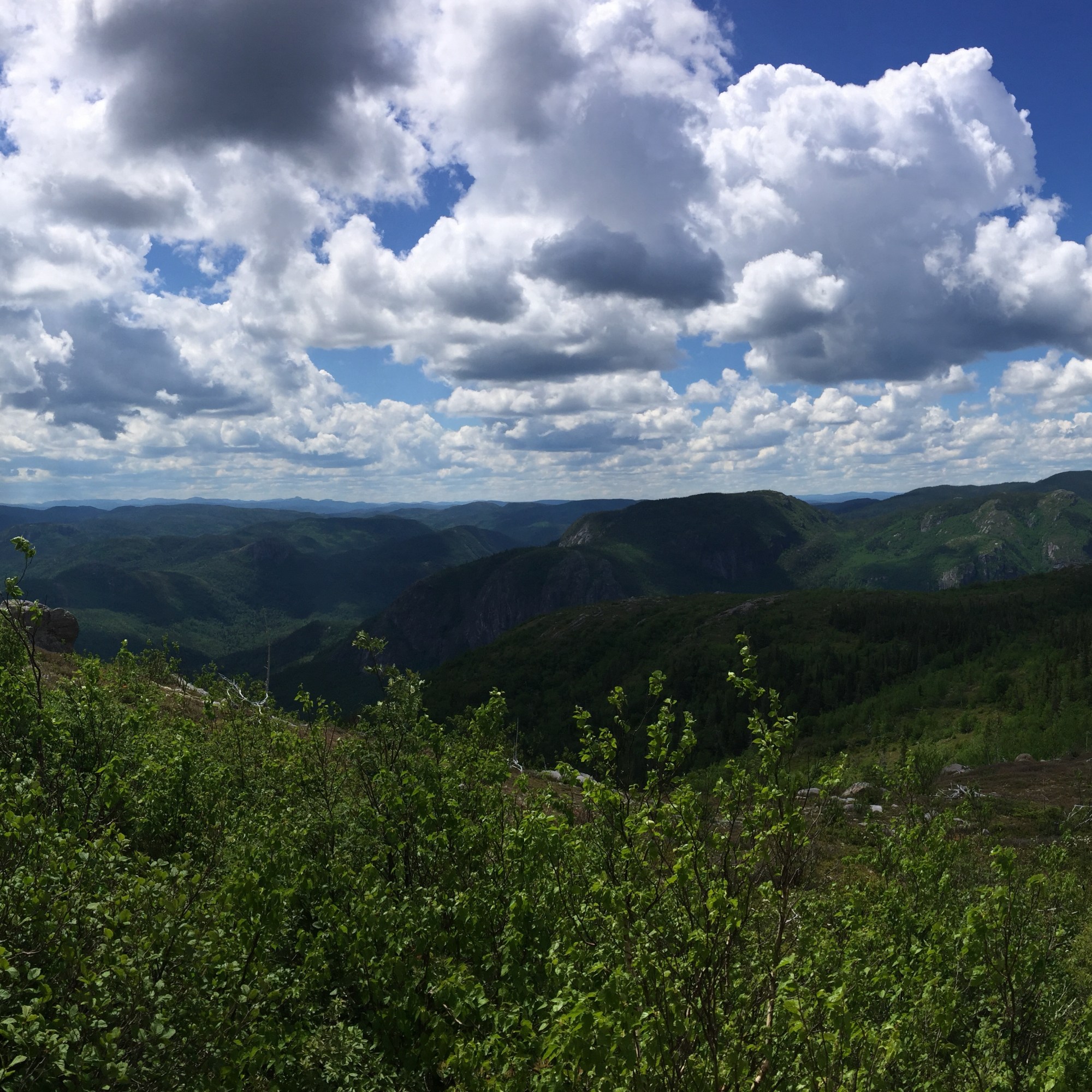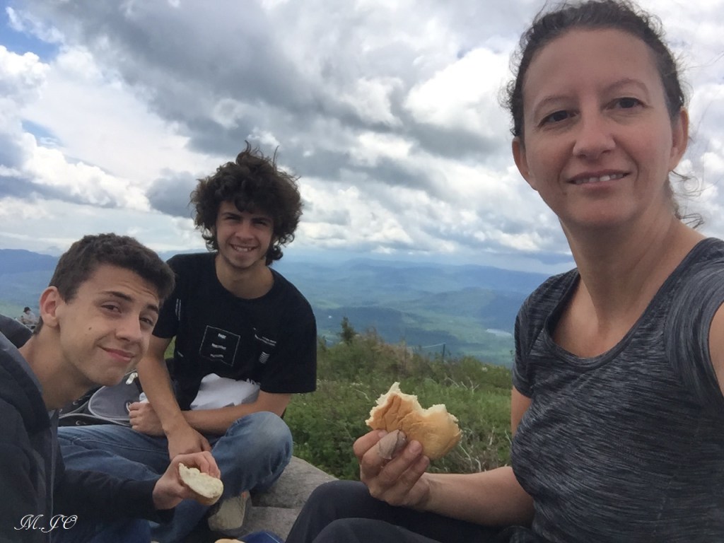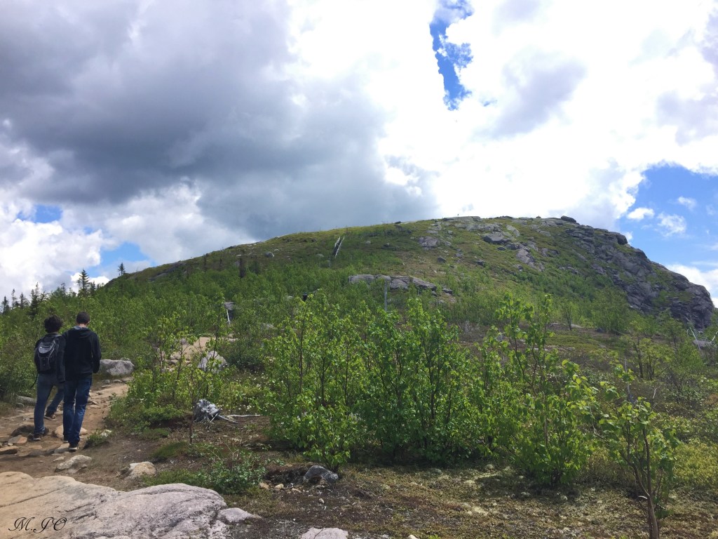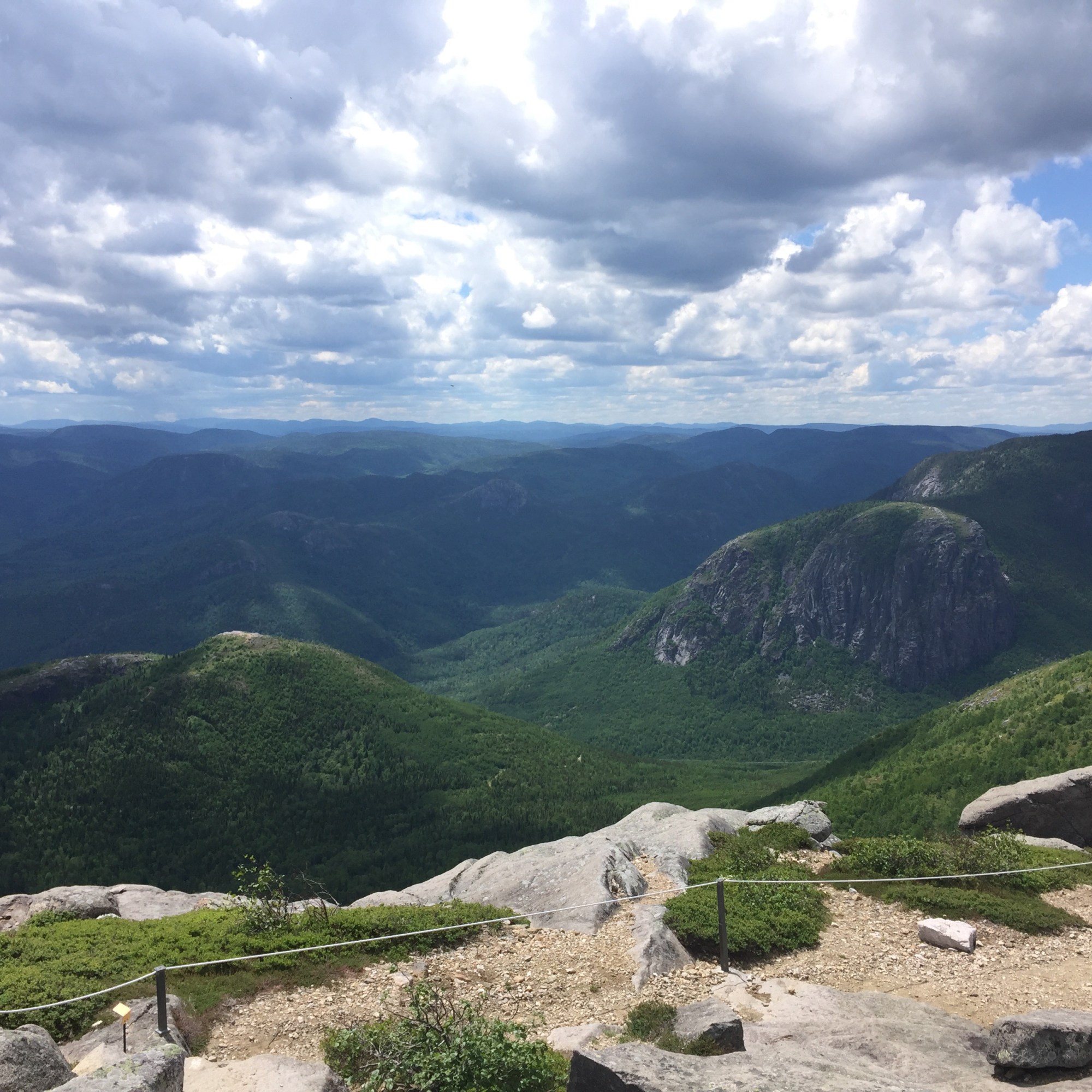 J’aime prendre mon temps en haut, nous en profitons pour manger notre lunch et admirer la vue! Le sommet est un cap rocheux, il y a un belvédère et des trottoirs en bois car le sol est tellement inégal. La vue est impressionnante, un 360 de montagnes verdoyantes et vallonnées, des caps de roches et des routes sinueuses. C’est réellement magnifique!