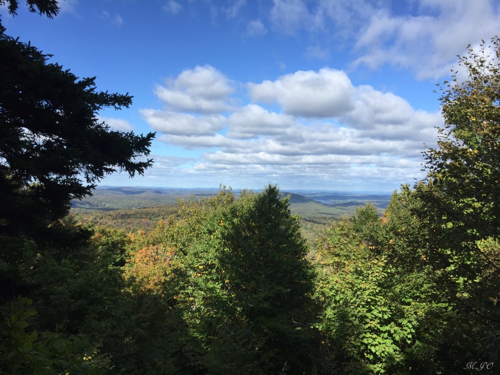 Le Mont Chauve n’est pas très haut, mais porte bien son nom ,hihihi, car la montagne est dégarnie en haut et la vue de son sommet est vraiment superbe. On y voit plusieurs montagnes, dont le Mont- Orford, le Pic de l’Ours (que je me promets de faire une autre fois) et le lac Stukely. Le sentier est facile et agréable, il y a plusieurs points de vue, il alterne en montée et en descente et en haut il y a une plate-forme en bois sur le pic rocheux pour relaxer, diner ou prendre une collation. Je recommande, à faire même en famille!!!