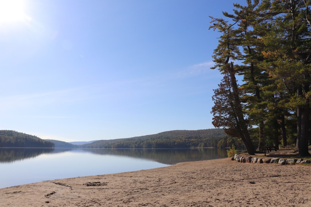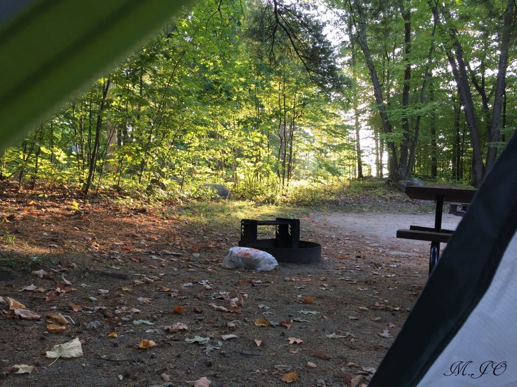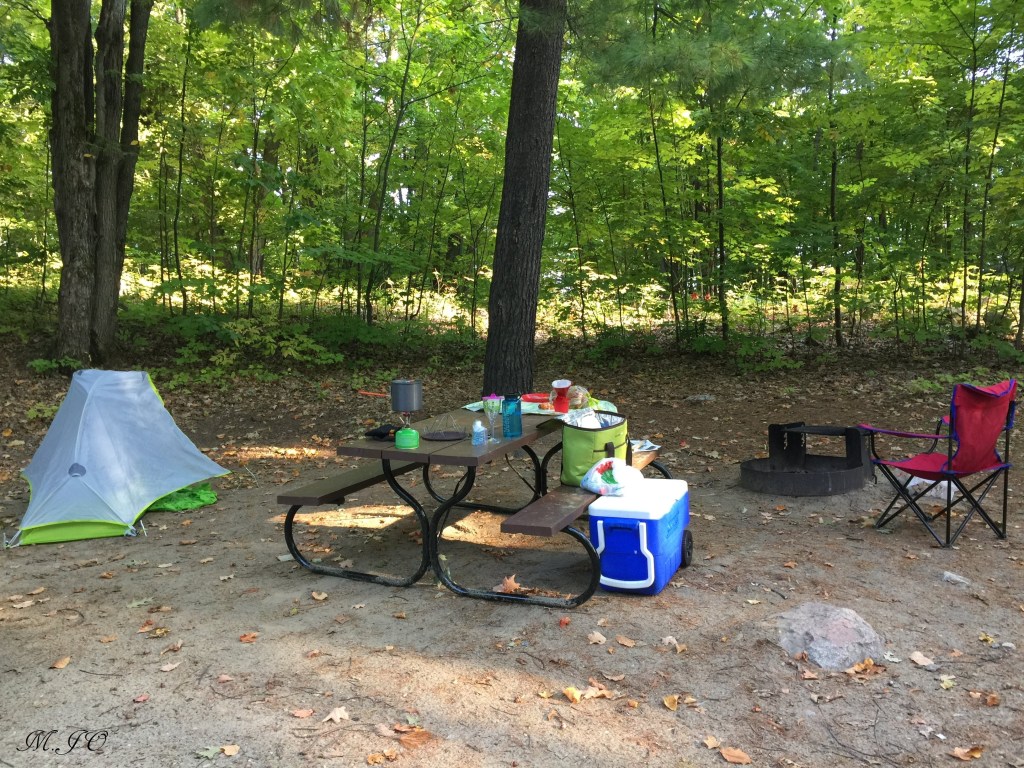 C’est le début de l’automne et les couleurs des arbres sont superbes. Le camping n’est pas bondé et c’est très tranquille. Mon terrain est grand et assez boisé que je ne vois pas beaucoup mes voisins. J’aime bien relaxer au camping, prendre l’apéro, me faire du BBQ, aller voir le coucher du soleil à la Plage Smith et me faire un feu.