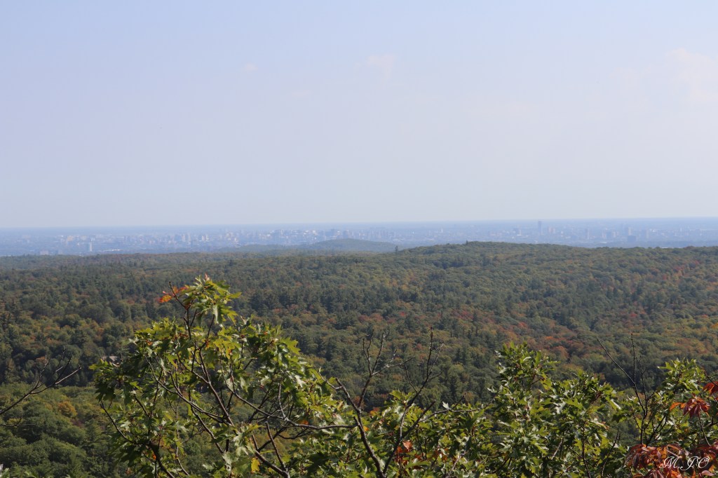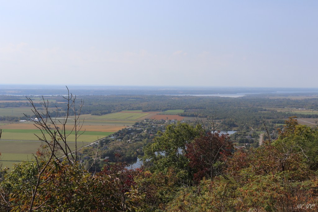 Le Mont King est une petite montagne, mais la vue est magnifique en haut. Tout au long du parcours, il y a plusieurs belvédères avec différents points de vue. Du sommet, on y voit la rivière des Outaouais, des lacs, et même, quand le ciel est clair, on voit la ville d’Ottawa avec ses gratte-ciels. On peut aussi observer l’escarpement de Eardley, c’est la fin des montagnes du Bouclier Canadien et le début des plaines, les basses- terres du St-Laurent.