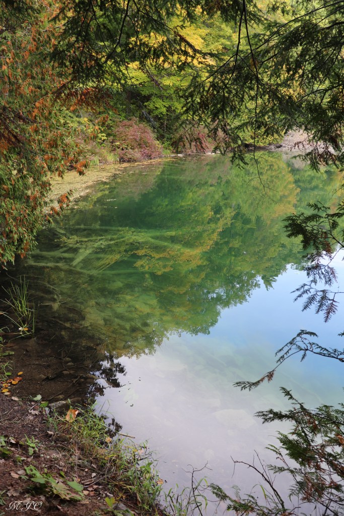Le sentier du lac Pink est une boucle de 2.3 km qui fait le tour du lac. Il y a deux entrées pour le même sentier et moi, j’ai stationné au Belvédère du Lac Pink. C’est un endroit très achalandé et j’ai dû faire plusieurs fois les deux stationnements avant de pouvoir me stationner. L’endroit est magnifique, le sentier est assez boisé et il y a quelques belvédères en forêt. L’eau du lac change de couleur tout dépendant d’où l’on est, parfois elle est bleue, parfois verte et parfois tellement turquoise.