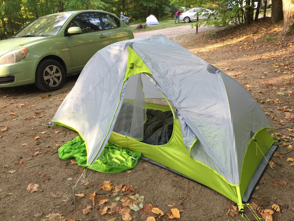 J’arrive à mon terrain de camping (site #345, sans service) en fin de journée le vendredi, disons que c’est quand même un 2h15 à 2h30 de route de chez moi! J’avais déjà préparé tout mon équipement dans mon auto la veille. Lorsque j’arrive, je m’installe rapidement sur le site, car la noirceur arrive assez vite, je me prépare un souper rapide et allume un bon feu.