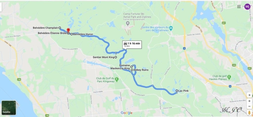 Le lendemain, c’était une journée assez chargée, visite du Domaine Mackenzie King, randonnée sur le Mont King et tour du Lac Pink. J’en profite pour faire ses 3 attraits parce qu’ils sont au même endroit et que je dois faire une bonne heure sur la route de mon camping pour me rendre sur ces sites, car c’est très au sud du parc.