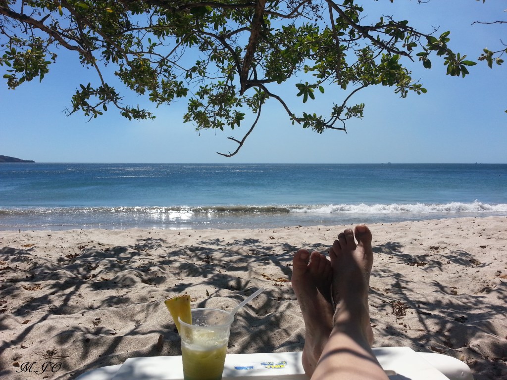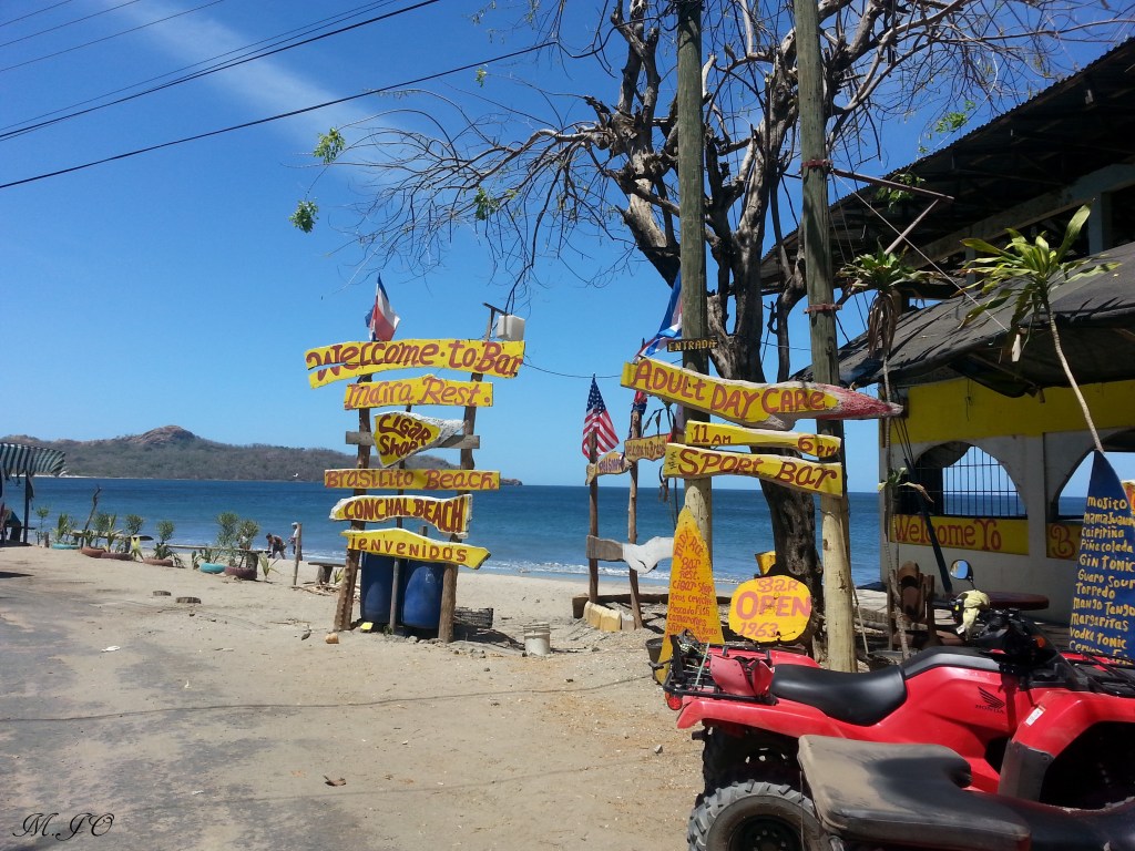 La ville de Tamarindo est assez touristique, nous avons marché sur la rue principale Calle Central, il y a pleins de restaurants, de bars, petites boutiques souvenirs, d’hôtels, boutiques de surfs. Il y a même de la bouffe de rue, mais contrairement à nous, ici et aux USA, où nous avons des food-trucks. Eux, c’est de la nourriture que des gens préparent et qu’ils servent à même du coffre de leur voiture. Quand même spécial de voir ça quand ne nous sommes pas habitués! Tamarindo est reconnue pour sa superbe plage et ses bonnes vagues, donc le paradis du surf! Nous avons diné au restaurant El Be – Tamarindo Beach Club, le resto est situé directement sur la plage. Manger avec une vue mer, c’est vraiment formidable! Au menu des 2/1 sur les Margarita et gros hamburgers! Après le diner, nous avons été nous promener sur le bord de la mer avant de repartir pour notre hôtel.