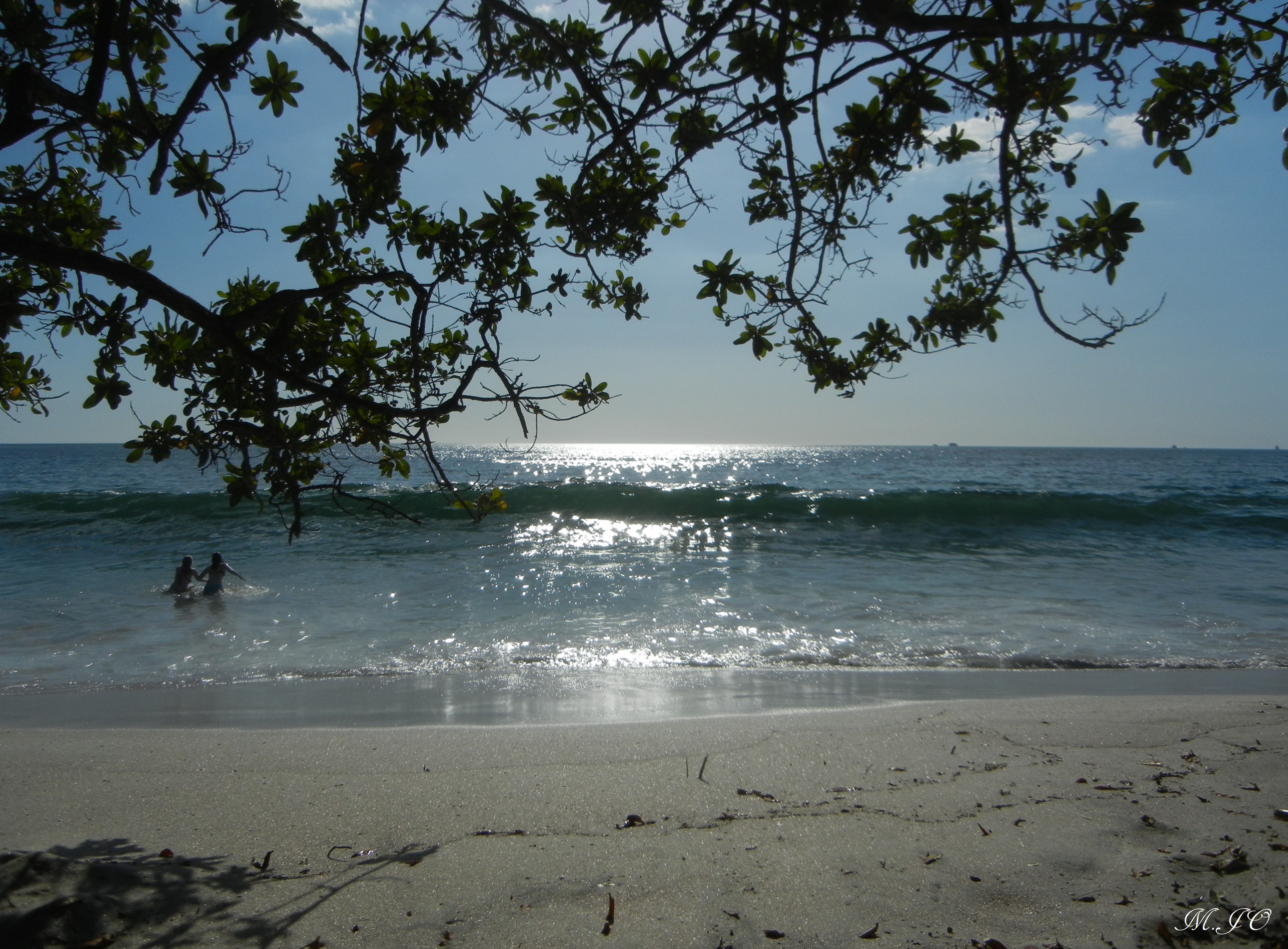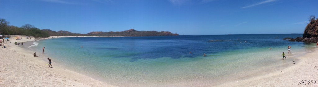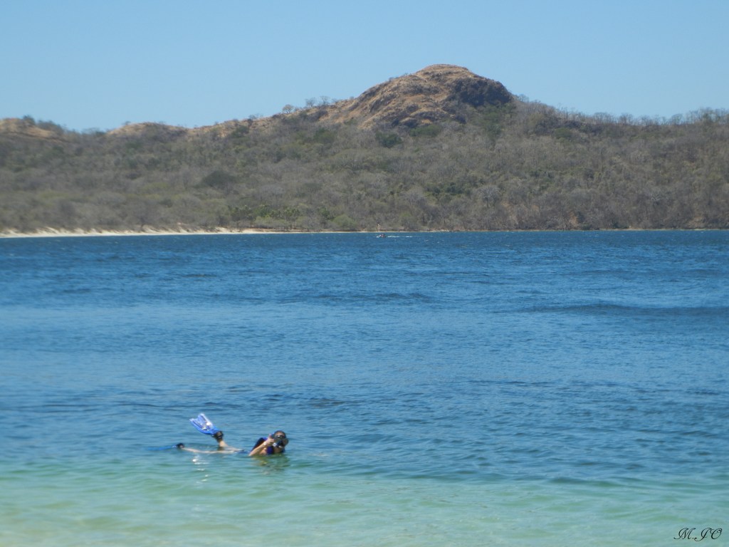 Pour se rendre à la Playa Conchal, qui coûte quand même cher en taxi parce que c’est à 30 min de notre l’hôtel. Il est préférable de se faire conduire au petit village de Brasilito, qui est environ 10 min de taxi et par la suite de marcher le 3 km qui reste en longeant la plage. De toute façon, il fait super beau et nous avons tout notre temps alors ce n’est que plus agréable! J’avais lu que cette plage était super belle et que l’eau était turquoise, ce qui est très rare pour le côté Pacifique. Oui, elle est belle, mais l’histoire ne disait pas que sur la plage ce n’est pas du sable mais pleins de petits coquillages, alors faire gaffe à ses pieds, ce n’est pas très doux. Niveau apnée, lorsqu’on se tient près des roches, on voit quelques petits poissons et j’ai aperçu aussi quelques murènes d’environ un mètre de long. Ce n’est pas dans mes plus belles plongées, mais ce fut quand même intéressant!