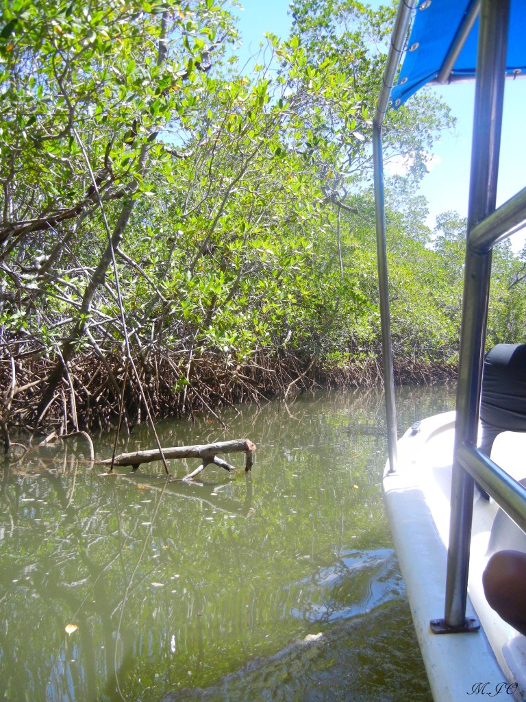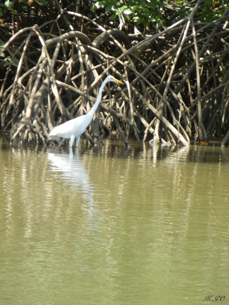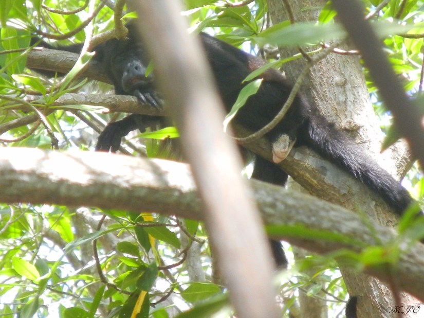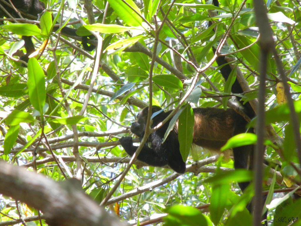 Nous avons décidé de faire une excursion au Parque Nacional Marino Las Baulas. C’est un tour de bateau d’environ 3 heures sur l’Estuaire de la Playa Grande. Découverte de la nature et de la vie sauvage Costaricaine. Nous partons donc avec nos caméras, nos jumelles, livre d’interprétation des oiseaux et crayons. Ma mère adore l’ornithologie et on veut identifier les espèces que l’on va voir!! Nous avons vu différentes espèces dont des aigrettes blanches, des hérons, des buses noires, des iguanes même dans des arbres, des crocodiles et pour finir nous avons vu un groupe de singes hurleurs.