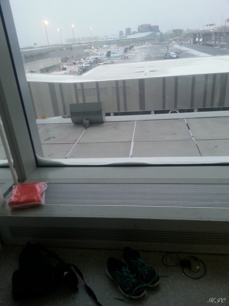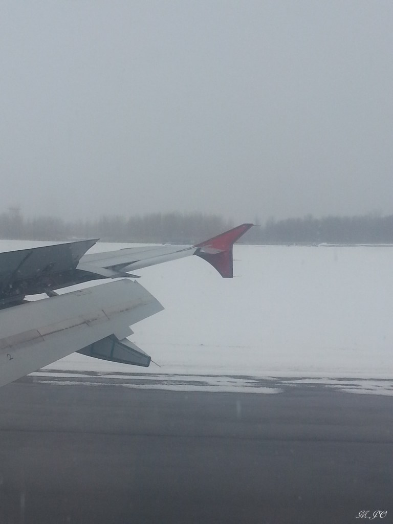 Pendant les quelques heures de la tempête qui s’abattait sur le Québec, tous les vols qui devaient atterrir à Montréal et à Québec ont été détournés vers Toronto. Je ne vous dis pas la cohue qui régnait à l’aéroport Pearson. Ils ont été pris au dépourvu et n’ont pas eu le temps de s’organiser alors grosse attente en piste avant de pouvoir sortir de l’avion, manque de nourriture dans l’aéroport, aucune redirection d’hôtel pour la nuit… ouf! Après un 10 heures de vol (habituellement, c’est un 6 heures), 2 heures d’attente aux douanes, récupérer nos grosses valises, nous devions trouver une place pour dormir un peu en attendant la confirmation de notre vol de retour du lendemain. J’ai donc passé la nuit sur un bord de fenêtre en métal et ma mère assise un peu plus loin. Nous avons finalement eu le vol de retour vers midi le lendemain. Ce fut une très mauvaise expérience de vol et d’aéroport! À Montréal, finalement, il y a eu plus de 50 cm de neige avec des rafales de 70 km à l’heure. C’était une des plus grosses tempêtes du siècle (la première reste celle de 1971) et il y eu plusieurs records d’établis au Québec. Il y eu pleins de voiture de pris partout et surtout un bouchon monstre sur l’autoroute 13, dont mon ami qui venait nous chercher à l’aéroport et qui a finalement couché dans le stationnement de l’aéroport car impossible de retourner. En plus, on ne savait pas du tout l’heure de notre retour. Nous étions quand même contentes de revenir dans l’après-midi du lendemain. Vraiment épuisées, mais heureuses d’être à la maison. Tout un retour dans une toute autre réalité!