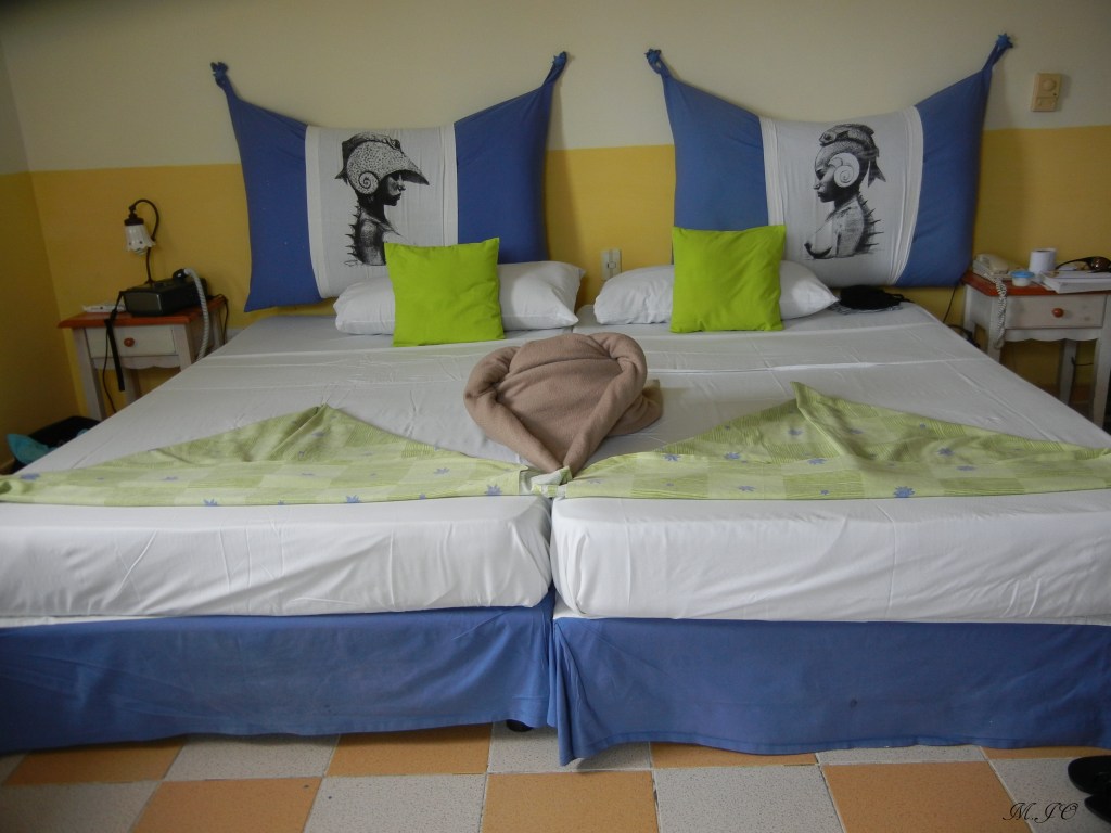 Notre Hôtel le Playa Blanca, maintenant le Bella Isla qui appartient à la chaîne d’hôtel Gran Caribe, comme la plupart des hôtels de l’île, donc à Cuba. C’est un petit resort de 306 chambres, 1 piscine, 3 restaurants dont un buffet, un casse-croute extérieur et un resto sur une falaise au bord de la mer avec une vue à couper le souffle. Les gens qui séjournent au Villa Bellarena (situé à côté mais avec de tous nouveaux bungalows) et le Villa Marinera (situé au village à côté de la marina) ont aussi accès aux installations de cet hôtel. Mais ce n’est pas bondé de monde, car le Bellarena a 45 chambres tandis que le Marinera en a 23. L’hôtel est situé à 10 km de l’aéroport ce qui est vraiment très agréable, car on n’a pas beaucoup de transport à faire ou à arriver à un aéroport ultra bondé. À cet hôtel, on doit privilégier les chambres en bungalow, car elles sont mieux, plus grandes, moins humides et plus près de la plage.