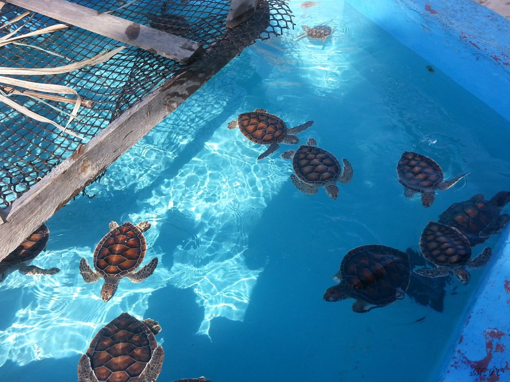 Centre de protection et d’élevage de tortues marines à la marina est à voir absolument!! Dans ce modeste centre (entrée 2CUC), on peut en apprendre plus sur les tortues, les voir nager dans les bassins et voir tout le travail que le personnel font pour la sauvegarde des tortues (cette espèce est en voie d’extinction), et ce, avec le peu d’installations et équipements qu’ils ont. D’avril à septembre, les plages de Cayo Largo deviennent un site de nidification pour des centaines de tortues marines. La mission du centre est, après la ponte des tortues , ils collectent les œufs. Les œufs sont ensuite rapportés au centre où ils sont alors ré-enterrés, identifiés et datés. Après la période d’incubation de plus ou moins 60 jours, les bébés tortues sortent de l’œuf et du sable. Les bébés sont ensuite transférés dans des bassins où ils seront temporairement gardés et nourris jusqu’à ce qu’ils soient assez vigoureux pour avoir une meilleure chance de survie lorsqu’ils seront remis à la mer. Ensuite lorsque les tortues sont prêtes, ils les remettent en liberté sur une plage sécurisée, les tortues repartent d’instinct vers la mer et on espère qu’elles survivront à tous les dangers qui les l’attendent. Elles partent d’assez haut sur la plage afin qu’elles puissent développer leurs muscles et surtout leur mémoire. Les femelles, à l’âge adulte, reviendront pondre à leur tour sur leur lieu de naissance. C’est vraiment magnifique de voir ça! Les touristes sont aussi invités à participer à la libération des tortues. C’est une expérience inoubliable!!