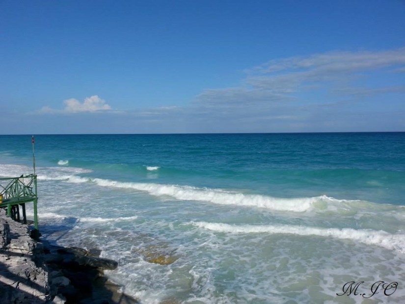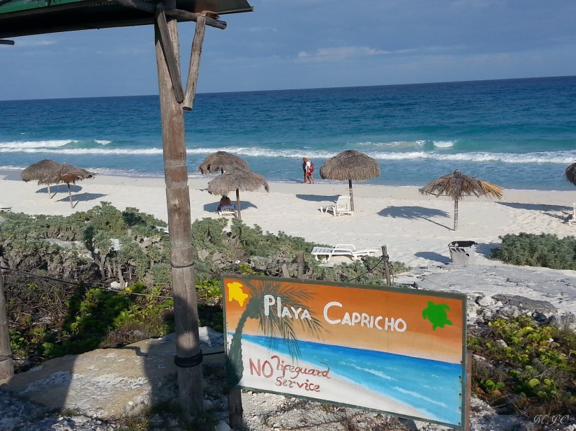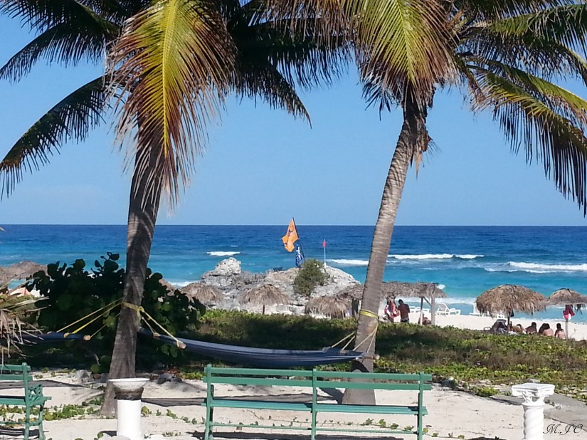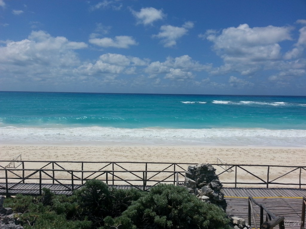 La plage de l’hôtel est superbe, de plus que l’hôtel est situé sur une falaise donc la vue est magnifique, la mer à l’infini!!! L’année que je suis allée, à marée basse, on pouvait aller se promener sur la plage, s’étendre sur les chaises longues et sous les palapas, se baigner dans la mer, prendre un verre au bar de la plage. Tout dépendant des années à cet endroit, parfois il y a de la plage et parfois non. Le Playa Blanca est le dernier hôtel à l’est de l’île, il n’y a pas d’autre hôtel après car le reste de l’île se rétrécit et on y retrouve quelques plages à l’état sauvage, des falaises calcaires, des forêts de pins, des palmeraies, des cactus, quelques animaux (des lézards, des iguanes, des oiseaux) et des moustiques (à cause des marais du nord de l’île). Si on désire quand même visiter ce coin de l’île, on doit le faire par nous-même et à nos risques et périls.