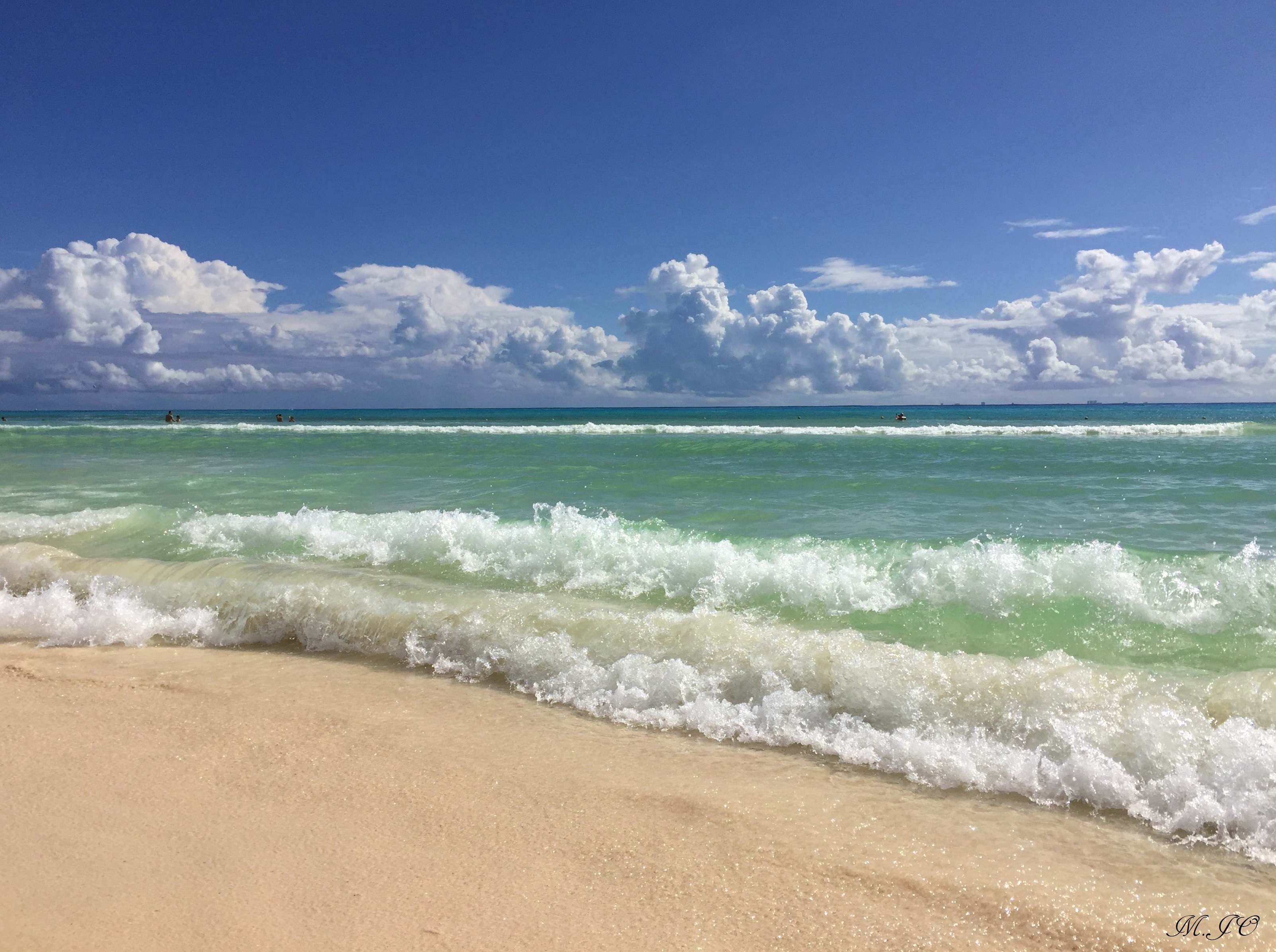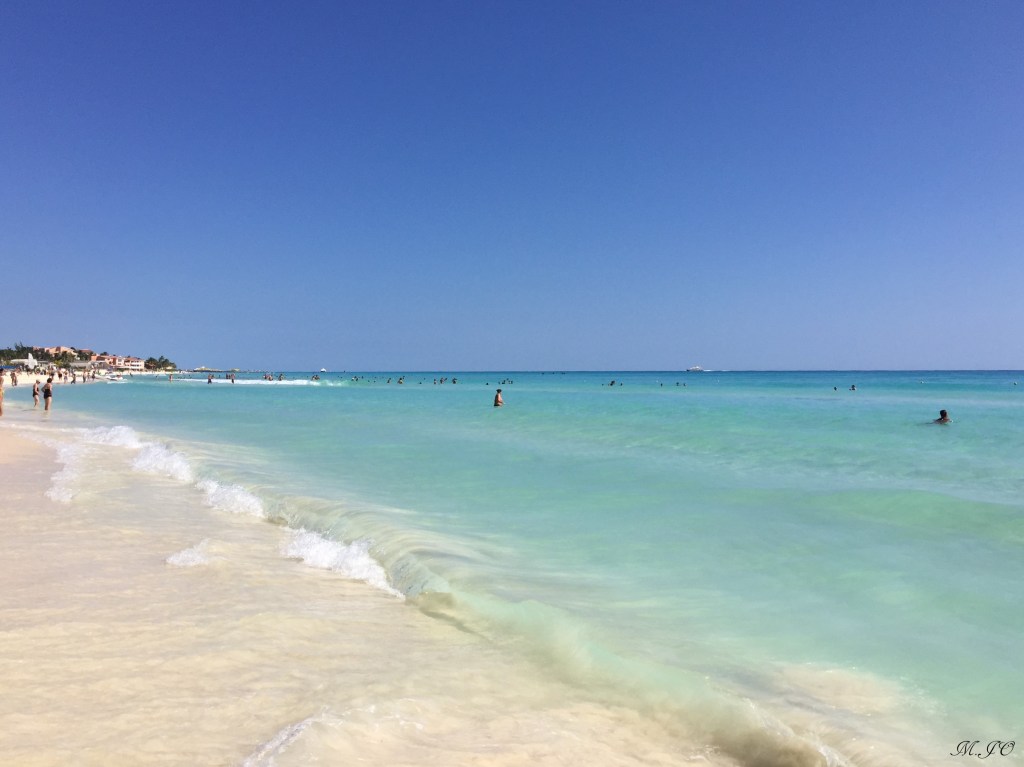 La plage de Playacar est superbe, le sable est très fin et blanc. La mer est super belle, parfaite, d’un turquoise jusqu’à loin à l’horizon, pas d’algues n’y de roches. Lorsque l’eau est super calme, l’eau devient translucide. La plage de sable est super large, de la section des chaises longues et des palmiers de notre hôtel, il faut marcher un 2-3 min pour se rendre à la mer. Ouf ! Ce n’est pas facile, hahaha!! La plage est vraiment longue, elle n’a plus de fin, alors on peut marcher à notre goût pendant des heures. Voir mon vidéo de la plage sur ma page Facebook: https://fb.watch/4GZv7sMnYP/