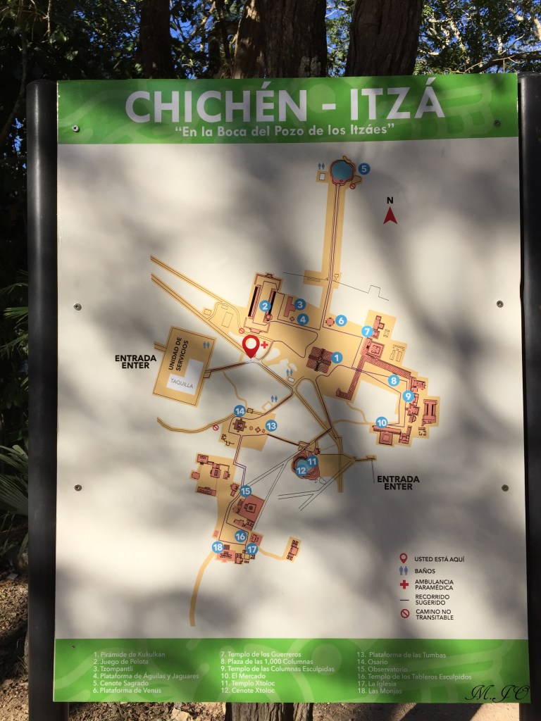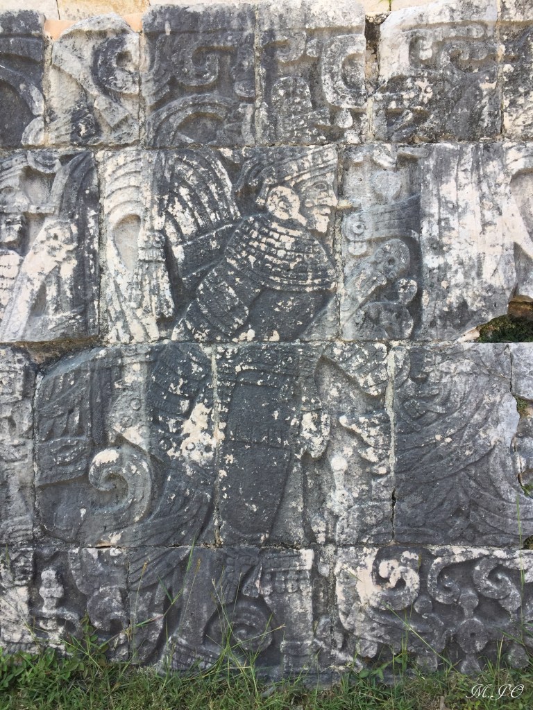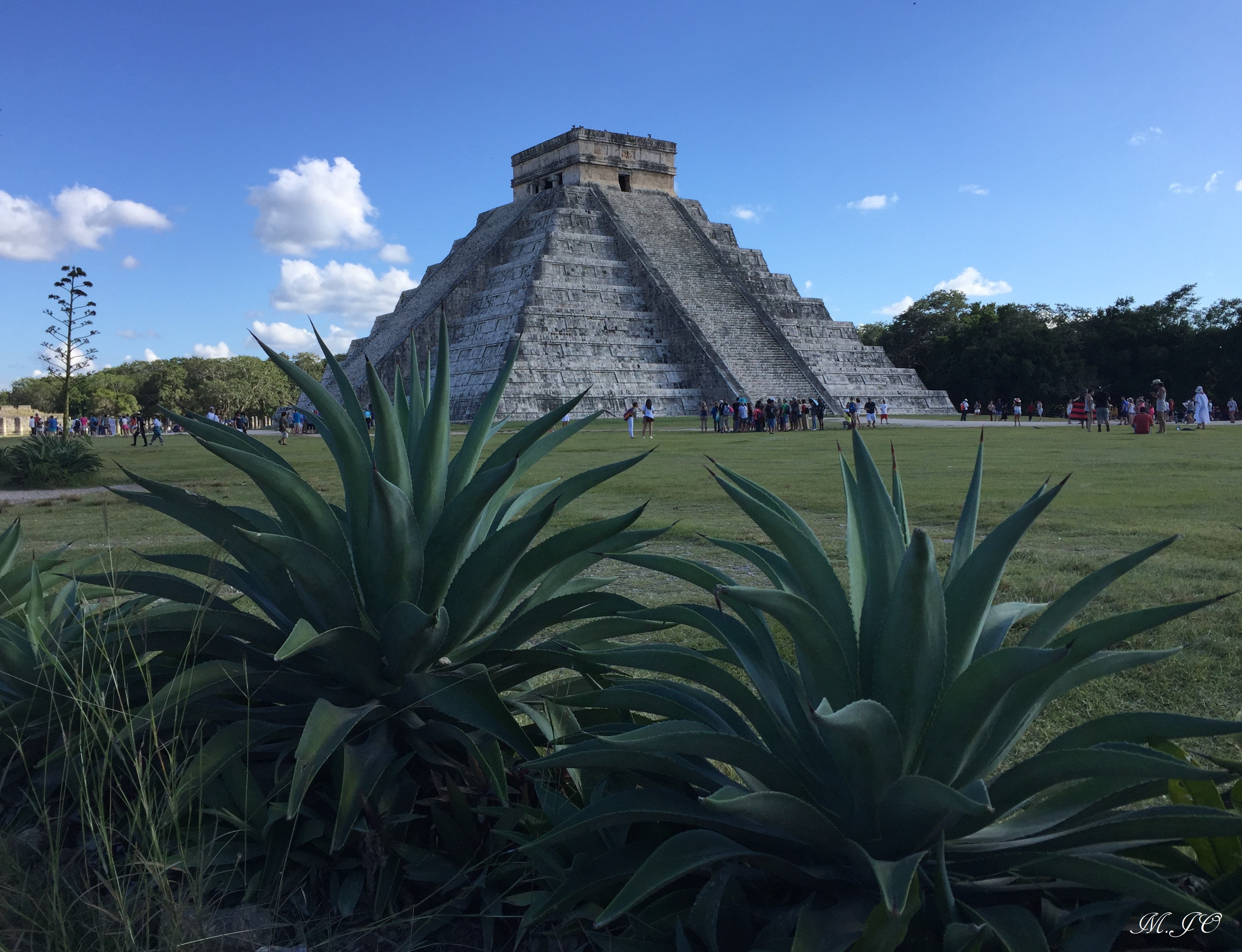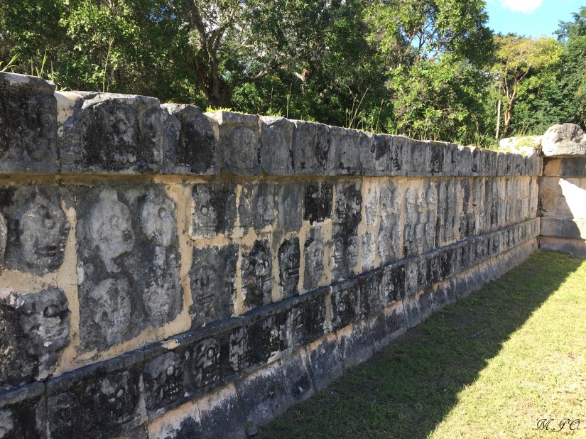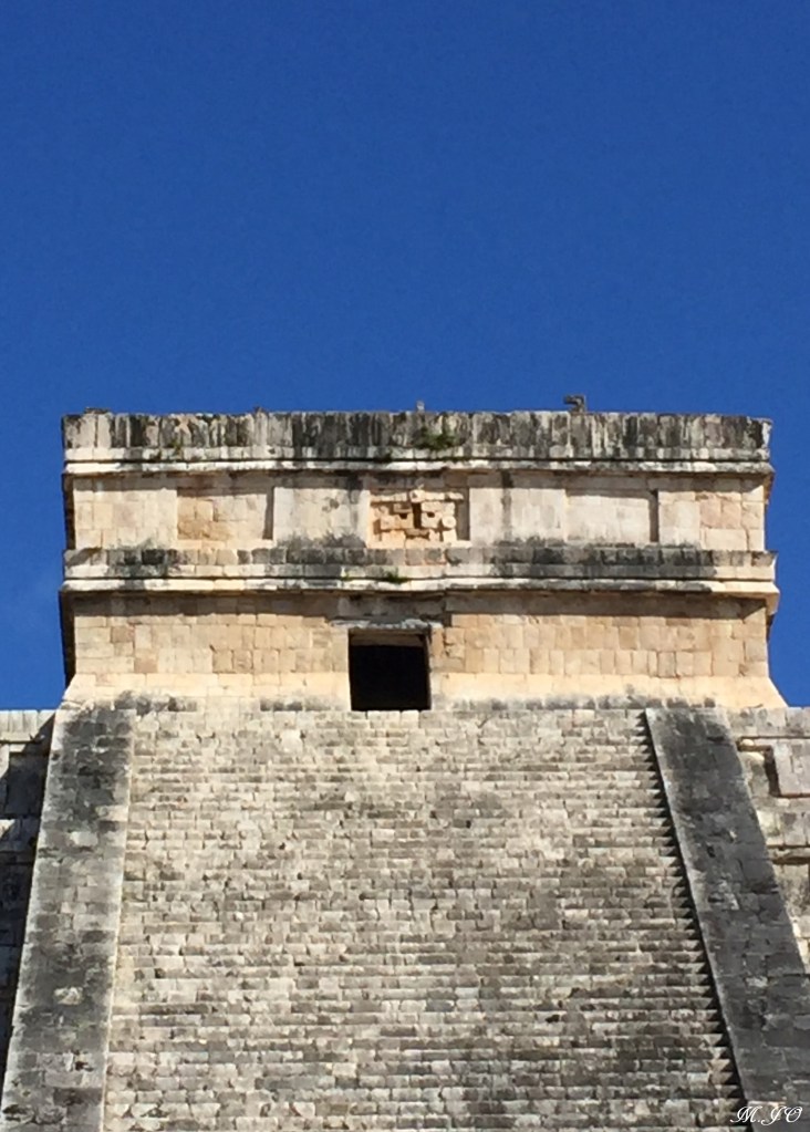 LA pièce maitresse du site est La grande pyramide Kukulcan. Elle est aussi appelée El Castillo (château en espagnol) du fait de sa taille imposante et de sa hauteur de 24 mètres. Elle se compose de neuf paliers et d’une chambre au sommet. Quatre escaliers de 91 marches sur chacun des quatre côtés mènent au sommet. La pyramide était dédiée au culte de Kukulcan (nom Maya du serpent à plumes des toltèques, Quetzalcoatl). La pyramide est orientée de telle sorte que lors des équinoxes de printemps et d’automne les rayons du soleil arrivant sur la pyramide créent un jeu d’ombre et de lumière laissant dévoiler ainsi un « serpent à plumes » descendant le long de la pyramide… elle est superbe, par contre nous ne pouvons pas monter au sommet et non plus la visiter à l’intérieur. Voir mon vidéo de la pyramide sur ma page Facebook: https://fb.watch/4GZEg7Ra7u/