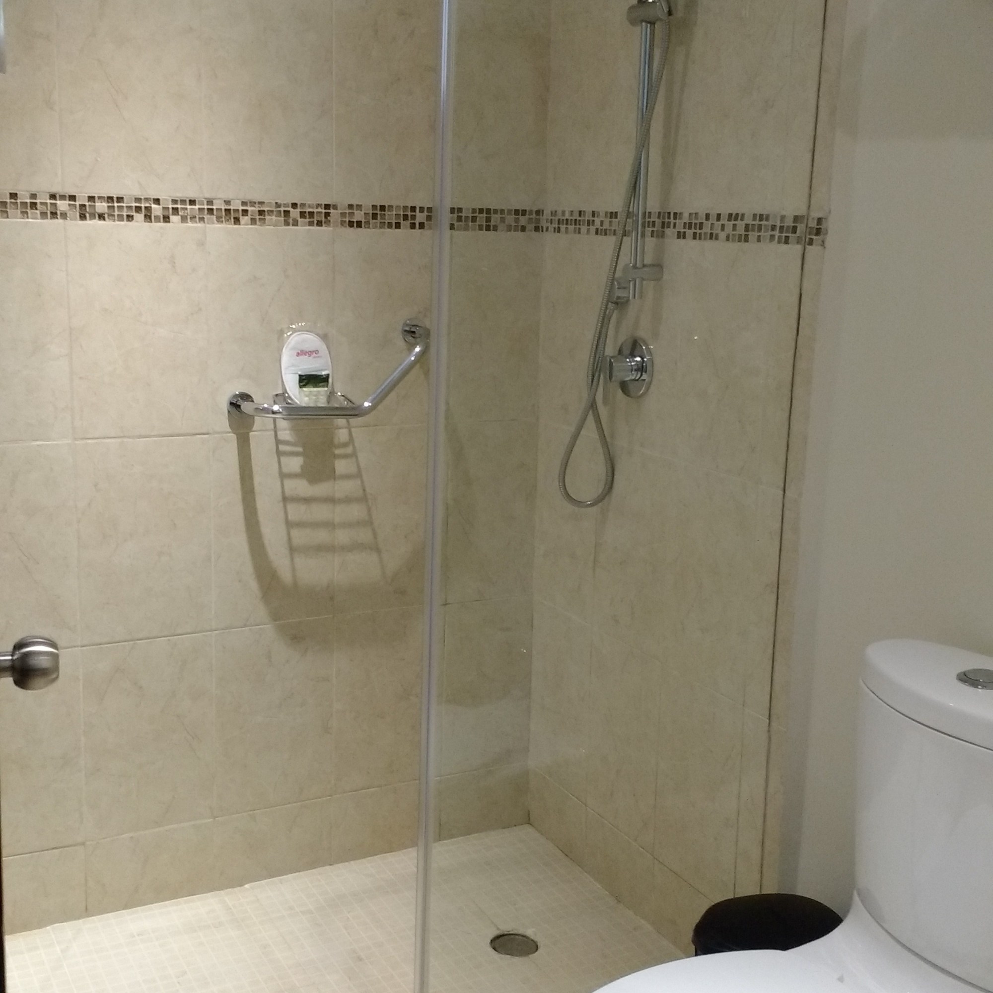 Nous avons la chambre dans bungalow #26 qui est situé dans le milieu du resort, donc près de tout. Les chambres sont propres, confortables et de style épuré. Nous sommes au 2ime étages à droite avec le toit en pignon fait en paille. C’est super beau, mais c’est moins insonorisé qu’aux premiers étages qui eux ont un vrai plafond. Donc, on entend un peu les bruits de l’extérieur et les petits oiseaux chanter tôt le matin. La salle de bain est très belle avec sa douche en céramique et en verre. Nous avons aussi un petit balcon avec vue « partielle » sur la mer (mais disons qu’il faut avoir une paire de jumelle pour la voir) pour relaxer, lire, boire une bière, ou un café le matin.