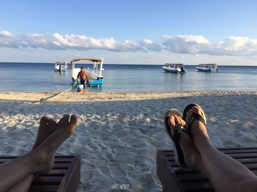 À Puerto Morelos, la barrière de corail est située à 400 mètres du rivage, il faut donc être en bateau pour aller à l’eau. Nous ne sommes pas autorisés d’aller à la barrière de corail par nous-même, nous devons participer à une excursion avec un guide. Ce n’est pas très cher, il en coûte environ 25$ et ceci inclus l’équipement (par contre, j’ai toujours le mien avec moi) et un petit diner sur la plage. La plongée est correcte, ce n’est pas les fonds marins les plus beaux que j’ai vu, mais pour des débutants c’est parfait. Il y a aussi pleins d’autres choix et d’endroits où l’on peut réserver pour une journée ou demi journée en apnée.