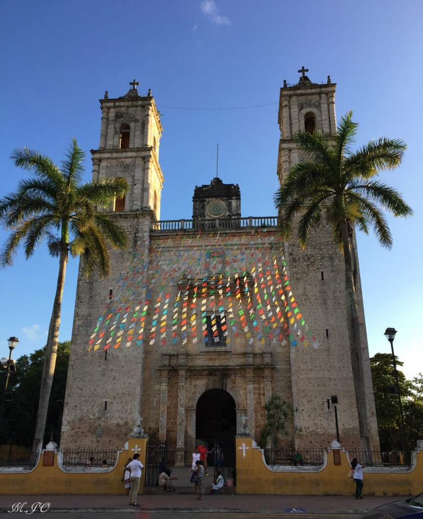 Sur le site, on peut acheter des grignotines et des rafraichissements. Ensuite, nous partons en direction de Chichén Itza, mais nous faisons un arrêt dans la ville de Valladolid pour pour diner et visiter sa belle église Iglesia de San Servacio ainsi que son parc Francisco Canton Rosado.